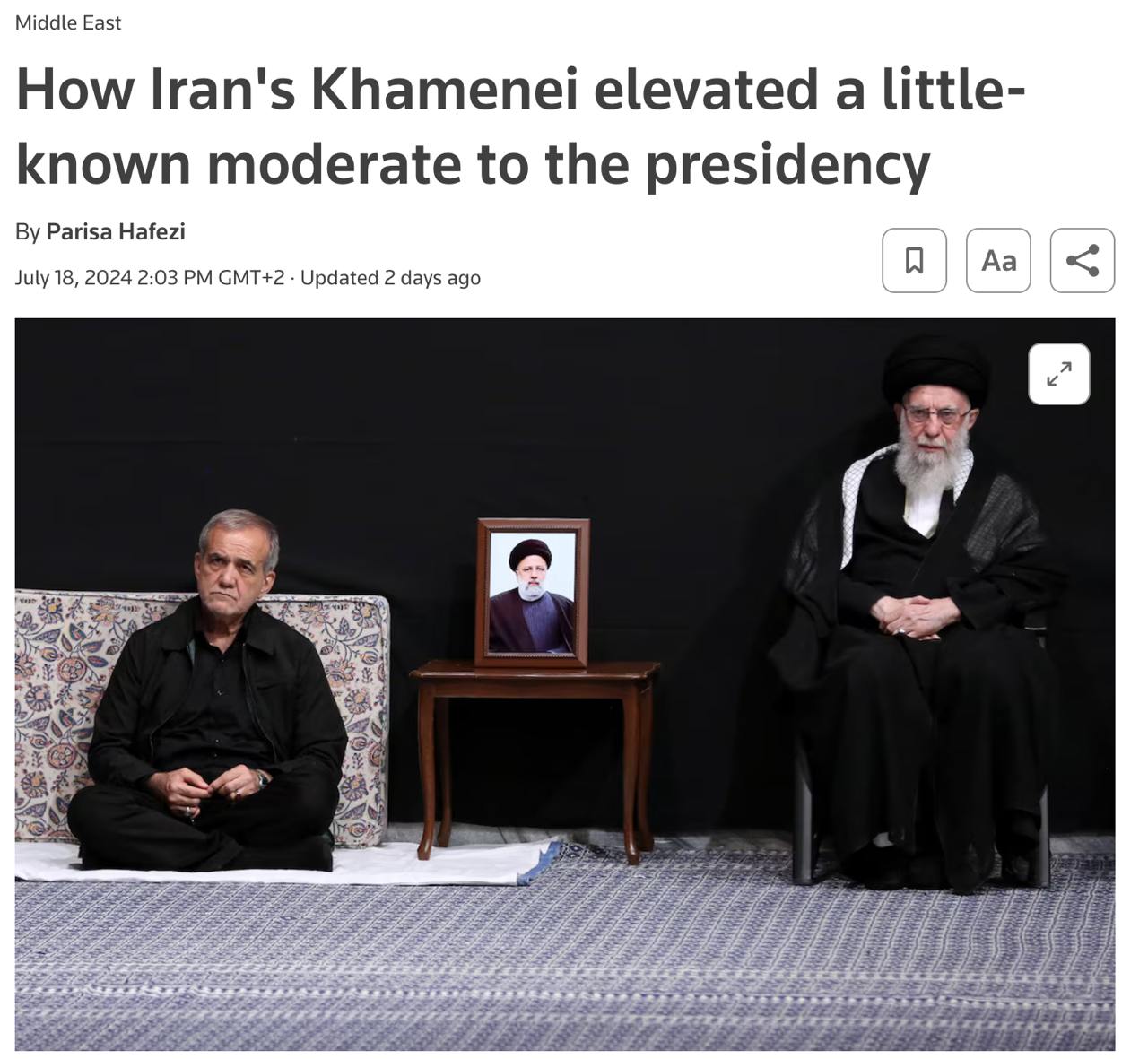 الرئيسية/سياسة/السياسة الداخليةرويترز: بزشكيان هو نتيجة هندسة الانتخابات من قبل آية الله خامنئي.يقرأدقيقة واحدة -الأربعاء 2024/10/23 - 16:36كود الأخبار:6146يشارك وكالة رويترز، في تقرير مفصل، تكتب أن المسؤولين الاستخباراتيين الإيرانيين قدموا في شهر أرديبهشت، قبل الانتخابات الرئاسية المبكرة، تقريرًا مريرًا إلى آية الله خامنئي، قائد الجمهورية الإسلامية. ذكر التقرير أن معظم الإيرانيين، الذين يغضبون بسبب المشاكل الاقتصادية وقمع الحريات الاجتماعية، يعتزمون مقاطعة الانتخابات بشكل واسع، وأن نسبة المشاركة في الانتخابات الرئاسية ستكون حوالي 13٪ فقط.وقال خمسة أشخاص مطلعين على الموضوع لرويترز إنه عند رؤية هذا التقرير، قرر آية الله التخطيط لانتخابات منظمة تمامًا وتهيئة الظروف لمسعود بزشكيان، المعتدل الأقل شهرة ولكن الموثوق به، للوصول إلى الرئاسة في منافسة كانت في البداية تحت سيطرة المتشددين.لینک گزارش روییترز به قلم پریسا حافظی Take less than a minute, register and share your opinion under this post.Insulting or inciting messages will be deleted.اشتراكالقادم بعد ذلك وأخيرا دعم النائب الأول لرئيس الجمهورية لوزير الشؤون الاقتصادية والماليةخواندن 0 كيهان: في عنبر النساء في سجن إيفين، سجينات سياسيات بحوزتهم مشروبات كحولية مصنوعة يدوياخواندن دقيقة واحدة اهتمام مجلس صيانة الدستور بالغموض في موقفه بشأن قانون الحجاب والعفافخواندن دقيقة واحدة دكتور عليرضا رييسي، معاون الصحة في وزارة الصحة، في خطوة مشكورة، طلب في رسالة إلى الدكتور ظفرقندي إعفاءً ضريبيًا لجميع العاملين في القطاع الصحي، مثل الاقتراح المطروح للممرضاتخواندن 0 المتحدث باسم الحكومة: تم تعيين محمدصادق معتمديان كحاكم لطهران وأكبر بهنامجو كحاكم لقُم من قبل مجلس الوزراء.خواندن 0الأكثر قراءةذكريات أكبر هاشمي رفسنجاني _ 1 اسفند 1378 ولقاء هو بعبدالله جاسبي وقلقه على نتائج الانتخاباتفیلم/أين العمید مرتضى طلاي؟مذكرات أكبر الهاشمي ــ 19 شهريفر 1378ـ استمرت المفاوضات السياسية بين الرجلين مع واز الطبسي حتى اصطحبه إلى طهران، وفي النهاية قرر الهاشمي على ما يبدو أن يخوض انتخابات البرلمان السادس بجدية من هنا.تشير سجلات المجلس الإسلامي الحديثة إلى أن البرلمان ليس رئيس الشؤون ولا يمكنه التدخل أو الموافقة على صلاحيات القائد العام للقوات المسلحة على أي مستوى ناهيك عن الإشراف عليها.ماذا سيحدث لمستقبل إيران مع المرشحين المعلنين للانتخابات الرئاسية؟ / حوار مع الدكتور تقي آزاد ارامكيهل يمكن الشعور بالتعب معك؟تعيين طبيب بيطري من قوا الباسيج رئيساً للشبكة الصحية بدلاً من جراح الأذن والأنف والحنجرة!مذكرات أكبر هاشمي ــ 14 سبتمبر 1378 ــ استمرت لقاءات كبار مديري الجهاز القضائي مع هاشمي رفسنجاني وشكواهم من إهمال رئيس القضاء الجديد هاشمي الشاهرودي.مذكرات أكبر الهاشمي -16 شهريور 1378- التقى الهاشمي مرة أخرى هذه المرة بعد أن التقى الراحل واز الطبسي بجهود عدة لتشجيع الهاشمي على المشاركة في الانتخابات.مذكرات اكبر الهاشمي-18 شهريفر 1378-استمرار جولة الممتلكات والمباني والأعمال في أستان المقدس