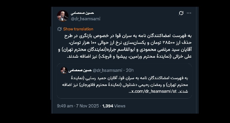 الرئيسية/سياسةمرحباً السيد الدكتور حسين سامسامي، هل لي أن أطرح سؤالاً مباشراً؟يقرأدقيقتان -السبت 2025/11/08 - 00:22كود الأخبار:23414يشارك وبما أن موضوع الرسالة هو قضية عامة ولها نتائج كثيرة، فهل السادة النواب الموقعين على الرسالة هم كذلك؟ وبما أن موضوع الرسالة هو قضية عامة ولها عواقب كثيرة، فهل سيرسل الممثلون المحترمون الذين وقعوا الرسالة نفس الرسالة إلى مكتب آية الله خامنئي مع تغيير طفيف، وبما يتوافق مع مبادئ الحكم المقبولة، مع شخص آية الله خامنئي باعتباره المرسل إليه؟إذا كانت هناك أي اعتبارات في هذا الصدد، فهل سترسلون مباشرة أمر استدعاء؟ به فهرست امضاکنندگان نامه به سران قوا در خصوص بازنگری در طرح حذف ارز ۲۸۵۰۰ تومان و یکسانسازی نرخ ارز حوالی ۱۰۰ هزار تومان، آقایان سید مرتضی محمودی و ابوالقاسم جراره(نمایندگان محترم تهران) و علی خزائی (نمایندۀ محترم ورامین، پیشوا و قرچک) نیز اضافه شدند. https://t.co/jfZN7QEnRQ— حسین صمصامی (@dr_hsamsami) November 7, 2025🔴آقای دکتر حسین صمصامیدرود🔸یک سوال صریح بپرسم؟💢 از آنجا که موضوع نامه موضوعی مبتلابه عام جامعه است و تبعات فراوان دارد، آیا نمایندگان محترمی که نامه را امضا کردند همین نامه را با اندکی تغییر و با رعایت شئون پذیرفته شده حاکمیتی با مخاطب قراردادن شخص آیتالله خامنهای به دفتر…— AbdiMedia - Abdollah Abdi (@abdolah_abdi) November 7, 2025 Take less than a minute, register and share your opinion under this post.Insulting or inciting messages will be deleted.اشتراكالقادم بعد ذلك إيران في وضع يمكنها من التفاوض مع جميع البلدانخواندن دقيقة واحدة غادر عبد العظيم شمخاني محافظة الأهواز، وأصبح علي بويري رئيسًا لمحافظة الأهوازخواندن دقيقة واحدة هل هناك علاقة بين حزب الحضارة الإسلامية الجديد والمجموعة المالية؟خواندن دقيقة واحدة أنهى الصحفي والمحلل السياسي فؤاد شمس حياتهخواندن دقيقة واحدة السيد وزير الداخلية! هل هذا الكلام صحيح عن الشاب الذي أضرم النار في نفسه في الأهواز؟/ أخبر الشعب بالإجابة بكل حيادية وصراحة وصراحةخواندن دقيقة واحدةالأكثر قراءةذكريات أكبر هاشمي رفسنجاني _ 1 اسفند 1378 ولقاء هو بعبدالله جاسبي وقلقه على نتائج الانتخاباتفیلم/أين العمید مرتضى طلاي؟مذكرات أكبر الهاشمي ــ 19 شهريفر 1378ـ استمرت المفاوضات السياسية بين الرجلين مع واز الطبسي حتى اصطحبه إلى طهران، وفي النهاية قرر الهاشمي على ما يبدو أن يخوض انتخابات البرلمان السادس بجدية من هنا.تشير سجلات المجلس الإسلامي الحديثة إلى أن البرلمان ليس رئيس الشؤون ولا يمكنه التدخل أو الموافقة على صلاحيات القائد العام للقوات المسلحة على أي مستوى ناهيك عن الإشراف عليها.ماذا سيحدث لمستقبل إيران مع المرشحين المعلنين للانتخابات الرئاسية؟ / حوار مع الدكتور تقي آزاد ارامكيهل يمكن الشعور بالتعب معك؟تعيين طبيب بيطري من قوا الباسيج رئيساً للشبكة الصحية بدلاً من جراح الأذن والأنف والحنجرة!مذكرات أكبر هاشمي ــ 14 سبتمبر 1378 ــ استمرت لقاءات كبار مديري الجهاز القضائي مع هاشمي رفسنجاني وشكواهم من إهمال رئيس القضاء الجديد هاشمي الشاهرودي.مذكرات أكبر الهاشمي -16 شهريور 1378- التقى الهاشمي مرة أخرى هذه المرة بعد أن التقى الراحل واز الطبسي بجهود عدة لتشجيع الهاشمي على المشاركة في الانتخابات.مذكرات اكبر الهاشمي-18 شهريفر 1378-استمرار جولة الممتلكات والمباني والأعمال في أستان المقدس