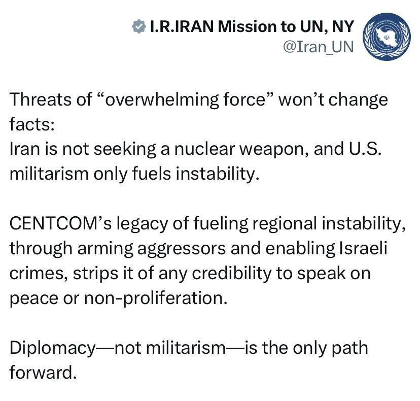 الرئيسية/سياسة تمثيلية الجمهورية الإسلامية في نيويورك: التهديد بـ "القوة الساحقة" لا يغير الواقع.يقرأدقيقة واحدة -الخميس 2025/06/12 - 11:03كود الأخبار:19527يشارك إيران ليست بصدد الحصول على سلاح نووي، والعسكرة الأمريكية تؤدي فقط إلى زيادة عدم الاستقرار.إيران ليست في سبيل الحصول على أسلحة نووية، والعسكرة الأمريكية لا تؤدي إلا إلى تفاقم عدم الاستقرار.سجل القيادة المركزية الأمريكية (سينتكوم) في تأجيج عدم الاستقرار الإقليمي - من خلال تسليح المعتدين وتوفير الظروف لجرائم إسرائيل - يسلبها أي مصداقية للتعليق على السلام أو عدم انتشار الأسلحة.الدبلوماسية، وليس العسكرة، هي الطريق الوحيد الممكن للمضي قدمًا. Take less than a minute, register and share your opinion under this post.Insulting or inciting messages will be deleted.اشتراكالقادم بعد ذلك سؤال واحد من الدكتور علي لاريجاني عن القائد فرهاد نذريخواندن دقيقة واحدة "الذكية" جيدة ولكن ليس للإيرانيين!خواندن دقيقة واحدة عباس عبدي يحذر قاليباف من البنزين؛ جرح 2019 ما زال طازجاً، فلماذا نسلك نفس الطريق الخطأ مرة أخرى؟خواندن دقيقة واحدة ردود تويتر في 4 أكتوبرخواندن دقيقة واحدة والمزيد من الاتفاقيات... دعونا نحتفظ بها لوقت لاحق.خواندن دقيقة واحدةالأكثر قراءةذكريات أكبر هاشمي رفسنجاني _ 1 اسفند 1378 ولقاء هو بعبدالله جاسبي وقلقه على نتائج الانتخاباتفیلم/أين العمید مرتضى طلاي؟مذكرات أكبر الهاشمي ــ 19 شهريفر 1378ـ استمرت المفاوضات السياسية بين الرجلين مع واز الطبسي حتى اصطحبه إلى طهران، وفي النهاية قرر الهاشمي على ما يبدو أن يخوض انتخابات البرلمان السادس بجدية من هنا.تشير سجلات المجلس الإسلامي الحديثة إلى أن البرلمان ليس رئيس الشؤون ولا يمكنه التدخل أو الموافقة على صلاحيات القائد العام للقوات المسلحة على أي مستوى ناهيك عن الإشراف عليها.ماذا سيحدث لمستقبل إيران مع المرشحين المعلنين للانتخابات الرئاسية؟ / حوار مع الدكتور تقي آزاد ارامكيهل يمكن الشعور بالتعب معك؟تعيين طبيب بيطري من قوا الباسيج رئيساً للشبكة الصحية بدلاً من جراح الأذن والأنف والحنجرة!مذكرات أكبر هاشمي ــ 14 سبتمبر 1378 ــ استمرت لقاءات كبار مديري الجهاز القضائي مع هاشمي رفسنجاني وشكواهم من إهمال رئيس القضاء الجديد هاشمي الشاهرودي.مذكرات أكبر الهاشمي -16 شهريور 1378- التقى الهاشمي مرة أخرى هذه المرة بعد أن التقى الراحل واز الطبسي بجهود عدة لتشجيع الهاشمي على المشاركة في الانتخابات.مذكرات اكبر الهاشمي-18 شهريفر 1378-استمرار جولة الممتلكات والمباني والأعمال في أستان المقدس