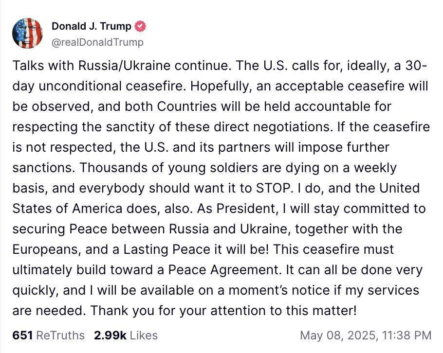 الرئيسية/عالمي ترامب: المفاوضات مع روسيا وأوكرانيا مستمرة، والولايات المتحدة تريد غير مشروط لإطلاق النار لمدة 30 يوما مثاليةيقرأدقيقة واحدة -الجمعة 2025/05/09 - 11:59كود الأخبار:17741يشارك من الناحية المثالية، تريد الولايات المتحدة غير مشروط لإطلاق النار لمدة 30 يوماكتب الرئيس الأمريكي دونالد ترامب في الحقيقة: المفاوضات مع روسيا / أوكرانيا مستمرة. من الناحية المثالية، تريد الولايات المتحدة غير مشروط لإطلاق النار لمدة 30 يوما. ومن المأمول أن يتم التوصل إلى وقف مقبول لإطلاق النار وأن يحاسب كلا البلدين على احترام قدسية هذه المفاوضات المباشرة. إذا لم يتم الالتزام بوقف إطلاق النار ، فستفرض الولايات المتحدة وشركاؤها عقوبات إضافية.يموت الآلاف من الجنود الشباب كل أسبوع، ويجب على الجميع أن يرغبوا في توقف هذه العملية. أنا أفعل ذلك ، وكذلك الولايات المتحدة الأمريكية.بصفتي رئيسا ، سأظل ملتزما مع الأوروبيين بضمان السلام بين روسيا وأوكرانيا ، وسيكون ذلك سلاما دائما! وينبغي أن يؤدي وقف إطلاق النار هذا في نهاية المطاف إلى اتفاق سلام. كل هذا يتم بسرعة كبيرة ، وإذا كانت هناك حاجة إلى خدماتي ، فسأكون متاحا على الفور. شكرا لك على اهتمامك بهذه القضية! Take less than a minute, register and share your opinion under this post.Insulting or inciting messages will be deleted.اشتراكالقادم بعد ذلك توم باراك، المبعوث الخاص للولايات المتحدة: الشرق الأوسط ليس سوى وهم.خواندن دقيقة واحدة وول ستريت جورنال: تسعى جميع البلدان إلى نسخ من الطائرات بدون طيار الإيرانيةخواندن دقيقة واحدة ترجمة خطاب ترامب في الأمم المتحدة بشأن إيرانخواندن 0 وزارت الخارجية الأميركية، بمناسبة الذكرى الثالثة لوفاة مهسا (جينا) أميني، أصدرت بياناً قالت فيه إن مستقبل إيران ــ من وجهة نظر الولايات المتحدة ــ قد "نهبته طبقة حاكمة فاسدة".خواندن دقيقة واحدة زعمت مطبوعة أميركية: المدن الصاروخية الإيرانية لم تتضرر جراء الهجمات الإسرائيليةخواندن دقيقة واحدةالأكثر قراءةذكريات أكبر هاشمي رفسنجاني _ 1 اسفند 1378 ولقاء هو بعبدالله جاسبي وقلقه على نتائج الانتخاباتفیلم/أين العمید مرتضى طلاي؟مذكرات أكبر الهاشمي ــ 19 شهريفر 1378ـ استمرت المفاوضات السياسية بين الرجلين مع واز الطبسي حتى اصطحبه إلى طهران، وفي النهاية قرر الهاشمي على ما يبدو أن يخوض انتخابات البرلمان السادس بجدية من هنا.تشير سجلات المجلس الإسلامي الحديثة إلى أن البرلمان ليس رئيس الشؤون ولا يمكنه التدخل أو الموافقة على صلاحيات القائد العام للقوات المسلحة على أي مستوى ناهيك عن الإشراف عليها.ماذا سيحدث لمستقبل إيران مع المرشحين المعلنين للانتخابات الرئاسية؟ / حوار مع الدكتور تقي آزاد ارامكيهل يمكن الشعور بالتعب معك؟تعيين طبيب بيطري من قوا الباسيج رئيساً للشبكة الصحية بدلاً من جراح الأذن والأنف والحنجرة!مذكرات أكبر هاشمي ــ 14 سبتمبر 1378 ــ استمرت لقاءات كبار مديري الجهاز القضائي مع هاشمي رفسنجاني وشكواهم من إهمال رئيس القضاء الجديد هاشمي الشاهرودي.مذكرات أكبر الهاشمي -16 شهريور 1378- التقى الهاشمي مرة أخرى هذه المرة بعد أن التقى الراحل واز الطبسي بجهود عدة لتشجيع الهاشمي على المشاركة في الانتخابات.مذكرات اكبر الهاشمي-18 شهريفر 1378-استمرار جولة الممتلكات والمباني والأعمال في أستان المقدس