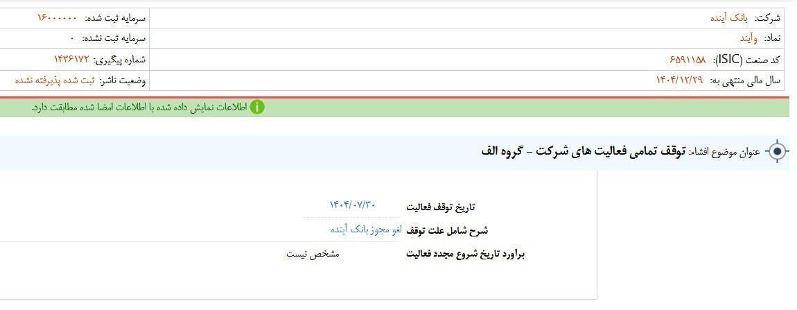 خانه/اقتصادی لغو مجوز بانک آینده، رسما اعلام شدخواندن0 -چهارشنبه 1404/08/21 - 14:56کد خبر23500اشتراکگذاری کمتر از یک دقیقه زمان بگذارید، ثبتنام کنید و نظرتان را زیر همین پست به اشتراک بگذارید.پیامهای توهینآمیز و یا حاوی دعوت به خشونت حذف خواهند شد.ثبت نامدر ادامه بخوانید ماجرای پرداخت بدهی بابک زنجانی چه بود؟خواندن 1 دقیقه سندی به عبدی مدیا رسید که نشان میدهد بازرس کل قضایی استان خوزستان درمورد موضوعات مالیاتی شرکت سرمایه گذاری نفت و گاز زاویه دستور بازرسی و تحقیق صادر کرده استخواندن 1 دقیقه مدارکی به عبدی مدیا رسید که حاکی از تذکر و پیگیری سازمان بازرسی کل کشور به مرکز حراست وزارت تعاون، کار و رفاه اجتماعی...خواندن 1 دقیقه پول گمشده بانک آینده کجاست/ مگر ممکن است این حجم از پول ناپدید شود؟خواندن 1 دقیقه ایران مال با ۵/۵ میلیارددلار سرمایه قرار است نابود شود؟خواندن 1 دقیقهباید خواندخاطرات اکبر هاشمی - ۱ اسفند ۱۳۷۸ - ملاقات عبدالله جاسبی و نگرانی از نتایج انتخاباتفیلم/ سردار مرتضی طلایی کجاست؟خاطرات اکبر هاشمی - ۱۹ شهريور ۱۳۷۸ - مذاکرات دو نفره سیاسی با واعظ طبسی تا هنگام بدرقه به سوی تهران هم ادامه داشته که در نهایت هاشمی ظاهرا از اینجا تصمیم به شرکت جدی در انتخابات مجلس ششم گرفتسوابق ادوار اخیر مجلس شورای اسلامی نشان داد که مجلس در راس امور نیست و در اختیارات فرمانده کل قوا و نیروهای مسلح در هیچ سطحی نمیتواند دخالت و یا مصوبه طی کند، چه برسد که نظارت کندآینده ایران با نامزدهای اعلام شده انتخابات ریاست جمهوری چه میشود؟ / گفتگو با دکتر تقی آزاد ارمکیمیشه با شما احساس خستگی کرد؟یک دامپزشک بسیجی بجای جراح گوش و حلق و بینی سرپرست شبکه بهداشت ایذه شد!خاطرات اکبر هاشمی - ۱۴ شهريور ۱۳۷۸ - دیدار مدیران ارشد دستگاه قضایی با هاشمی رفسنجانی و گله آنان از بی توجهی هاشمی شاهرودی رییس جدید قوه قضاییه ادامه داردخاطرات اکبر هاشمی - ۱۶ شهريور ۱۳۷۸ - در ادامه تلاش های مرحوم واعظ طبسی که در دیدارهای مکرر برای تشویق هاشمی به شرکت در انتخابات اقدام میکرد این بار هم او با هاشمی ملاقات کردخاطرات اکبر هاشمی - ۱۸ شهريور ۱۳۷۸ - ادامه بازدید ها از متعلقات و ابنیه و آثار آستان قدس