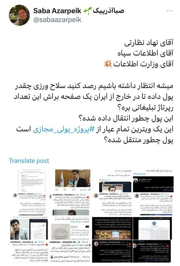 خانه/سیاستخانم صبا آذرپیک!خواندن1 دقیقه -چهارشنبه 1403/07/04 - 09:48کد خبر3994اشتراکگذاری فرزند خلف پدرت نیستی اگر مدرک و سندی بابت ادعاهات نسبت به عبدی مدیا داشته باشی و منتشر نکنی. حتما سایر ادعاها و پرونده سازیهای شما با همکاری نهادهای امنیتی به همین صورت و منوال هست؟وگرنه حرف مفت را هررر کسی میتونه بزنه. با این روش به گرد پای آمنهسادات هم نمیرسی. کمتر از یک دقیقه زمان بگذارید، ثبتنام کنید و نظرتان را زیر همین پست به اشتراک بگذارید.پیامهای توهینآمیز و یا حاوی دعوت به خشونت حذف خواهند شد.ثبت نامدر ادامه بخوانید سربسته نوشته بودم و آذری جهرمی اندکی سر باز سخن گفتخواندن 1 دقیقه ببینید: اسپینوزای ایران؟ | آینده اسلام در جمهوری اسلامی با حضور حاج شیخ عبدالرحیم سلیمانی اردستانیخواندن 1 دقیقه بهروز خان درود برای من خبرنگار ساده سوالی پیش آمده فعالانی در فضای مجازی توییت میزنند و بارها سوال کردند چرا سعید جلیلی در لیست تحریم ها نیست؟خواندن 1 دقیقه پیش از این در مورد این جوان و نسبت های او در عبدی مدیا نوشتهامخواندن 1 دقیقه جناب صحفی درود امیدوارم دادستان منصوب و دادستان ویژه روحانیت تهران همانطور که نسبت به پرونده اتهامی گروه مالی زاویه آن را با صدور قرار واگذاری به دادسرای امور بین الملل تهران ارسال و اعاده کرد...خواندن 1 دقیقهباید خواندخاطرات اکبر هاشمی - ۱ اسفند ۱۳۷۸ - ملاقات عبدالله جاسبی و نگرانی از نتایج انتخاباتفیلم/ سردار مرتضی طلایی کجاست؟خاطرات اکبر هاشمی - ۱۹ شهريور ۱۳۷۸ - مذاکرات دو نفره سیاسی با واعظ طبسی تا هنگام بدرقه به سوی تهران هم ادامه داشته که در نهایت هاشمی ظاهرا از اینجا تصمیم به شرکت جدی در انتخابات مجلس ششم گرفتسوابق ادوار اخیر مجلس شورای اسلامی نشان داد که مجلس در راس امور نیست و در اختیارات فرمانده کل قوا و نیروهای مسلح در هیچ سطحی نمیتواند دخالت و یا مصوبه طی کند، چه برسد که نظارت کندآینده ایران با نامزدهای اعلام شده انتخابات ریاست جمهوری چه میشود؟ / گفتگو با دکتر تقی آزاد ارمکیمیشه با شما احساس خستگی کرد؟یک دامپزشک بسیجی بجای جراح گوش و حلق و بینی سرپرست شبکه بهداشت ایذه شد!خاطرات اکبر هاشمی - ۱۴ شهريور ۱۳۷۸ - دیدار مدیران ارشد دستگاه قضایی با هاشمی رفسنجانی و گله آنان از بی توجهی هاشمی شاهرودی رییس جدید قوه قضاییه ادامه داردخاطرات اکبر هاشمی - ۱۶ شهريور ۱۳۷۸ - در ادامه تلاش های مرحوم واعظ طبسی که در دیدارهای مکرر برای تشویق هاشمی به شرکت در انتخابات اقدام میکرد این بار هم او با هاشمی ملاقات کردخاطرات اکبر هاشمی - ۱۸ شهريور ۱۳۷۸ - ادامه بازدید ها از متعلقات و ابنیه و آثار آستان قدس