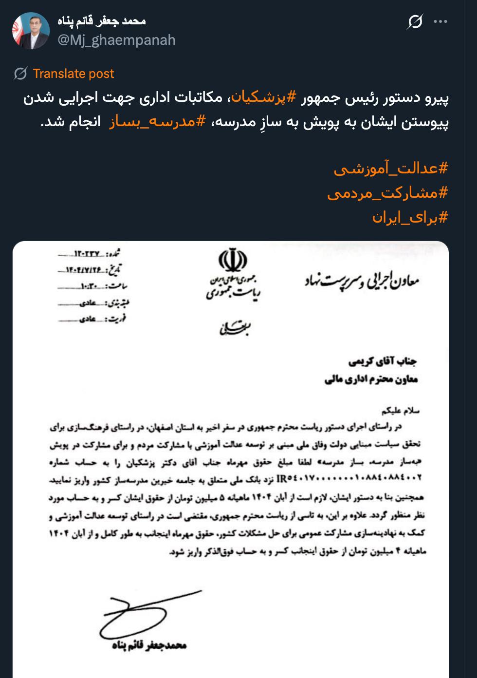 خانه/سیاستاقدام شایسته ای است موفق باشیدخواندن1 دقیقه -شنبه 1404/07/26 - 23:57کد خبر23111اشتراکگذاری پیرو دستور رئیس جمهور #پزشکیان، مکاتبات اداری جهت اجرایی شدن پیوستن ایشان به پویش به سازِ مدرسه، #مدرسه_بساز انجام شد.#عدالت_آموزشی#مشارکت_مردمی#برای_ایران pic.twitter.com/VbZMLHfYHV— محمد جعفر قائم پناه (@Mj_ghaempanah) October 18, 2025🔴 دروداقدام شایسته ای استموفق باشید— AbdiMedia - Abdollah Abdi (@abdolah_abdi) October 18, 2025 کمتر از یک دقیقه زمان بگذارید، ثبتنام کنید و نظرتان را زیر همین پست به اشتراک بگذارید.پیامهای توهینآمیز و یا حاوی دعوت به خشونت حذف خواهند شد.ثبت نامدر ادامه بخوانید آقای ساعدی درود نوع برخورد دادستان اگر سخنان آقای فواد ایزدی را توهین یا نشر اکاذیب بداند موضوع را روشن میکند.خواندن 1 دقیقه پاسخ محسن هاشمی رفسنجانی به یحیی (رحیم) صفوی: در استخر هم می توان شهید شد، همانگونه كه غواصان، در جنگ تحميلي در اروند شهيد شدندخواندن 1 دقیقه بشنوید | قسمت سیو سوم | کتاب ما چگونه ما شدیم؟ (خاموشی چراغ علم در ایران) نوشته دکتر صادق زیباکلامخواندن 1 دقیقه پاسخ تند فاطمه هاشمی خطاب به رحیم صفویخواندن 1 دقیقه کواکبیان به ۱۴ ماه حبس محکوم شدخواندن 1 دقیقهباید خواندخاطرات اکبر هاشمی - ۱ اسفند ۱۳۷۸ - ملاقات عبدالله جاسبی و نگرانی از نتایج انتخاباتفیلم/ سردار مرتضی طلایی کجاست؟خاطرات اکبر هاشمی - ۱۹ شهريور ۱۳۷۸ - مذاکرات دو نفره سیاسی با واعظ طبسی تا هنگام بدرقه به سوی تهران هم ادامه داشته که در نهایت هاشمی ظاهرا از اینجا تصمیم به شرکت جدی در انتخابات مجلس ششم گرفتسوابق ادوار اخیر مجلس شورای اسلامی نشان داد که مجلس در راس امور نیست و در اختیارات فرمانده کل قوا و نیروهای مسلح در هیچ سطحی نمیتواند دخالت و یا مصوبه طی کند، چه برسد که نظارت کندآینده ایران با نامزدهای اعلام شده انتخابات ریاست جمهوری چه میشود؟ / گفتگو با دکتر تقی آزاد ارمکیمیشه با شما احساس خستگی کرد؟یک دامپزشک بسیجی بجای جراح گوش و حلق و بینی سرپرست شبکه بهداشت ایذه شد!خاطرات اکبر هاشمی - ۱۴ شهريور ۱۳۷۸ - دیدار مدیران ارشد دستگاه قضایی با هاشمی رفسنجانی و گله آنان از بی توجهی هاشمی شاهرودی رییس جدید قوه قضاییه ادامه داردخاطرات اکبر هاشمی - ۱۶ شهريور ۱۳۷۸ - در ادامه تلاش های مرحوم واعظ طبسی که در دیدارهای مکرر برای تشویق هاشمی به شرکت در انتخابات اقدام میکرد این بار هم او با هاشمی ملاقات کردخاطرات اکبر هاشمی - ۱۸ شهريور ۱۳۷۸ - ادامه بازدید ها از متعلقات و ابنیه و آثار آستان قدس