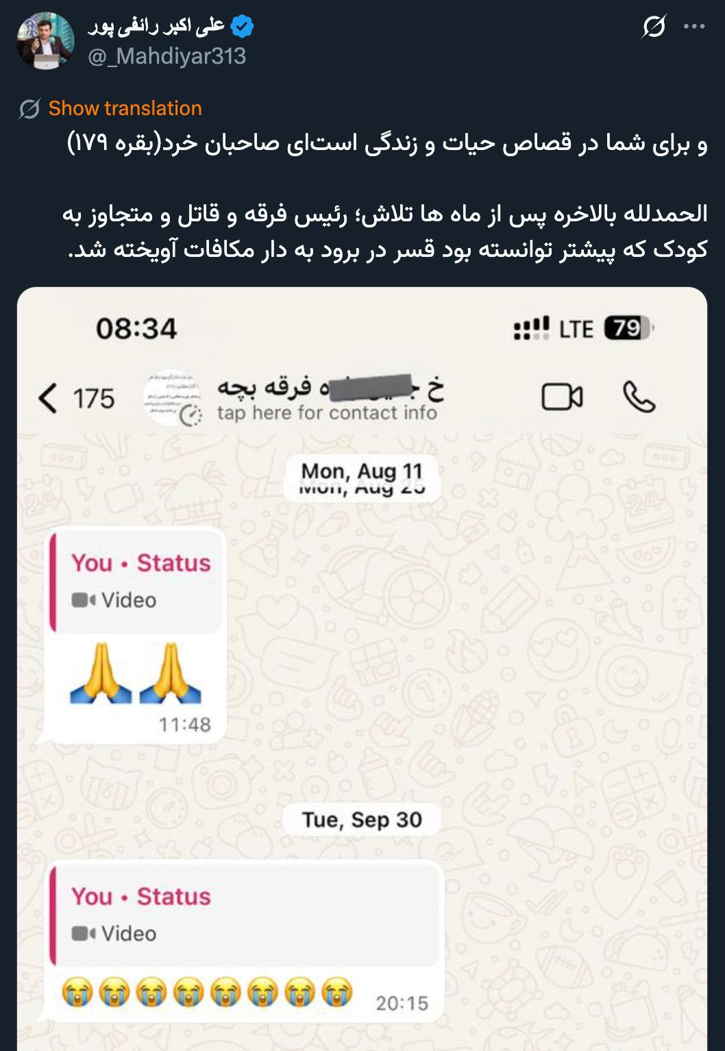 خانه/سیاست آقای رائفی پور از اعدام و قصاص با کلید واژه رییس_فرقه نام می برید اما از دادسرای مجری حکم و جزییات بیشتر پرونده اجرایی و محاکماتی چیزی نمیگویید، دقیقا چرا؟خواندن1 دقیقه -پنجشنبه 1404/08/01 - 23:45کد خبر23193اشتراکگذاری تصویر و برای شما در قصاص حیات و زندگی استای صاحبان خرد(بقره ۱۷۹)الحمدلله بالاخره پس از ماه ها تلاش؛ رئیس فرقه و قاتل و متجاوز به کودک که پیشتر توانسته بود قسر در برود به دار مکافات آویخته شد. pic.twitter.com/84BUjmJ8O2— علی اکبر رائفی پور (@_Mahdiyar313) October 23, 2025🔴 آقای رائفی پوراز اعدام و قصاص با کلید واژه #رییس_فرقه نام می برید اما از دادسرای مجری حکم و جزییات بیشتر پرونده اجرایی و محاکماتی چیزی نمیگویید، دقیقا چرا؟— AbdiMedia - Abdollah Abdi (@abdolah_abdi) October 23, 2025 کمتر از یک دقیقه زمان بگذارید، ثبتنام کنید و نظرتان را زیر همین پست به اشتراک بگذارید.پیامهای توهینآمیز و یا حاوی دعوت به خشونت حذف خواهند شد.ثبت نامدر ادامه بخوانید این همه سروصدای پدافند دیشب و الان در حوالی مصلی تهران و محدوده منطقه خاص ۷ شهرداری تهران برای چیست؟خواندن 1 دقیقه ظریف: سکوت کردهام تا خدشهای به منافع ملی وارد نشودخواندن 1 دقیقه صادق زیباکلام در مناظره با هاشمی گلپایگانی دبیر سابق ستاد امر به معروف: یک دلیل بیاورید که مرگ بر آمریکا به نفع ایران بوده من دهها دلیل دارم که به ضررمان تمام شده!خواندن 0 حمله تند روحانی به مجلس: مگر مجلس چند درصد مردم هست؟ مگه چقدر رای دارند؟! قانونگذاری روبروی مردم غلط استخواندن 0 حسن روحانی: مردم باید بعد از جنگ ۱۲ روزه اصلاح در امور را ببینند تندروها حالا فکر میکنند که این جنگ به زودی شروع نمیشود و عقب افتاده لذا دوباره برگشتند به بداخلاقیهای قبلیشان.خواندن 1 دقیقهباید خواندخاطرات اکبر هاشمی - ۱ اسفند ۱۳۷۸ - ملاقات عبدالله جاسبی و نگرانی از نتایج انتخاباتفیلم/ سردار مرتضی طلایی کجاست؟خاطرات اکبر هاشمی - ۱۹ شهريور ۱۳۷۸ - مذاکرات دو نفره سیاسی با واعظ طبسی تا هنگام بدرقه به سوی تهران هم ادامه داشته که در نهایت هاشمی ظاهرا از اینجا تصمیم به شرکت جدی در انتخابات مجلس ششم گرفتسوابق ادوار اخیر مجلس شورای اسلامی نشان داد که مجلس در راس امور نیست و در اختیارات فرمانده کل قوا و نیروهای مسلح در هیچ سطحی نمیتواند دخالت و یا مصوبه طی کند، چه برسد که نظارت کندآینده ایران با نامزدهای اعلام شده انتخابات ریاست جمهوری چه میشود؟ / گفتگو با دکتر تقی آزاد ارمکیمیشه با شما احساس خستگی کرد؟یک دامپزشک بسیجی بجای جراح گوش و حلق و بینی سرپرست شبکه بهداشت ایذه شد!خاطرات اکبر هاشمی - ۱۴ شهريور ۱۳۷۸ - دیدار مدیران ارشد دستگاه قضایی با هاشمی رفسنجانی و گله آنان از بی توجهی هاشمی شاهرودی رییس جدید قوه قضاییه ادامه داردخاطرات اکبر هاشمی - ۱۶ شهريور ۱۳۷۸ - در ادامه تلاش های مرحوم واعظ طبسی که در دیدارهای مکرر برای تشویق هاشمی به شرکت در انتخابات اقدام میکرد این بار هم او با هاشمی ملاقات کردخاطرات اکبر هاشمی - ۱۸ شهريور ۱۳۷۸ - ادامه بازدید ها از متعلقات و ابنیه و آثار آستان قدس