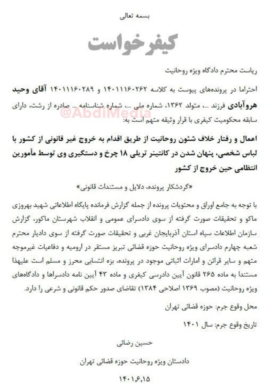 خانه/سیاستنکات قابل توجه کیفرخواست وحید هروآبادی و استاندارد دوگانه قوهقضائیهخواندن2 دقیقه -پنجشنبه 1403/06/22 - 10:39کد خبر1260اشتراکگذاری در متن کیفر خواست #وحید_هروآبادی که در کانال تلگرامیاش یادداشت برداری و منتشر کرده، آمده است:عبداله عبدی - عبدی مدیادادستان ویژه روحانیت تهران با اتهام اعمال و رفتار خلاف شئون روحانیت از طریق اقدام به خروج غیر قانونی از کشور با لباس شخصی! و پنهان شدن در کانتینر تریلی ۱۸ چرخ و دستگیری وی توسط مامورین انتظامی حین خروج از کشور برای او کیفر خواست صادر کرده و در این راستا هروآبادی برای محاکمه به دادگاه ویژه روحانیت احضار شده است.دقت در اتهام و استناد به ماده ۴۳ آیین نامه دادسراها و دادگاههای ویژه روحانیت مشخص میکند، دادستان برای او خلع لباس روحانیت را از دادگاه درخواست کردهاما دو نکته عجیب تر در این کیفرخواست وجود دارد:اول: دستگیری را توسط ماموران انتظامی گزارش کرده اما در متن کیفرخواست به گزارش سازمان اطلاعات سپاه استان آذربایجان غربی و تحقیقات صورت گرفته در دادسرای ویژه روحانیت آن حوزه استناد کرده است و مشخص نیست چرا این اتهام که در آن حوزه قضایی اتفاق افتاده سر از تهران در آورده؟دوم: محل وقوع بزه «تهران» اعلام شده است.مشخص است که چنین اتهامی صرفا برای برخی روحانیون طبق آیین نامه این دادسرا و دادگاه جرم تلقی میشوداما فعل ارتکابی سید ابراهیم رییسی جرم محسوب نمیشد؟!!میدانیم که ابراهیم رئیسی در اجلاس شانگهای مستندا در محفلی حضور یافت که در آن مشروب سرو میشد.طبق تبصره ۳ از ماده ۱۱ و همچنین تعریف مندرج در ماده ۱۶ آیین نامه دادسراها و دادگاههای ویژه روحانیت (صرف نظر از ارتکاب فعل مجرمانه شرکت در مجلس لهو و لعب) از آنجا که هیچ خدشهای در عکس و حضور ابراهیم رییسی در آن جلسه و بزم نیست، مجازات مقرر در تبصره ماده ۱۸ این آیین نامه (ارتکاب هتک حیثیت روحانیت و انقلاب) بخصوص اینکه خودش روحانی و قاضی و دادستان ویژه روحانیت هم بود و اشراف به جرم بودن آن برای روحانیون را داشت؛ شامل حالش میشد.و این نمونه دیگری از استاندارد دوگانه دستگاه قضایی است که وقتی به جریان قدرت وصل باشی حرامت حلال و اگر نه حلالت را حرام میخوانند. کمتر از یک دقیقه زمان بگذارید، ثبتنام کنید و نظرتان را زیر همین پست به اشتراک بگذارید.پیامهای توهینآمیز و یا حاوی دعوت به خشونت حذف خواهند شد.ثبت نامدر ادامه بخوانید سربسته نوشته بودم و آذری جهرمی اندکی سر باز سخن گفتخواندن 1 دقیقه ببینید: اسپینوزای ایران؟ | آینده اسلام در جمهوری اسلامی با حضور حاج شیخ عبدالرحیم سلیمانی اردستانیخواندن 1 دقیقه بهروز خان درود برای من خبرنگار ساده سوالی پیش آمده فعالانی در فضای مجازی توییت میزنند و بارها سوال کردند چرا سعید جلیلی در لیست تحریم ها نیست؟خواندن 1 دقیقه پیش از این در مورد این جوان و نسبت های او در عبدی مدیا نوشتهامخواندن 1 دقیقه جناب صحفی درود امیدوارم دادستان منصوب و دادستان ویژه روحانیت تهران همانطور که نسبت به پرونده اتهامی گروه مالی زاویه آن را با صدور قرار واگذاری به دادسرای امور بین الملل تهران ارسال و اعاده کرد...خواندن 1 دقیقهباید خواندخاطرات اکبر هاشمی - ۱ اسفند ۱۳۷۸ - ملاقات عبدالله جاسبی و نگرانی از نتایج انتخاباتفیلم/ سردار مرتضی طلایی کجاست؟خاطرات اکبر هاشمی - ۱۹ شهريور ۱۳۷۸ - مذاکرات دو نفره سیاسی با واعظ طبسی تا هنگام بدرقه به سوی تهران هم ادامه داشته که در نهایت هاشمی ظاهرا از اینجا تصمیم به شرکت جدی در انتخابات مجلس ششم گرفتسوابق ادوار اخیر مجلس شورای اسلامی نشان داد که مجلس در راس امور نیست و در اختیارات فرمانده کل قوا و نیروهای مسلح در هیچ سطحی نمیتواند دخالت و یا مصوبه طی کند، چه برسد که نظارت کندآینده ایران با نامزدهای اعلام شده انتخابات ریاست جمهوری چه میشود؟ / گفتگو با دکتر تقی آزاد ارمکیمیشه با شما احساس خستگی کرد؟یک دامپزشک بسیجی بجای جراح گوش و حلق و بینی سرپرست شبکه بهداشت ایذه ش