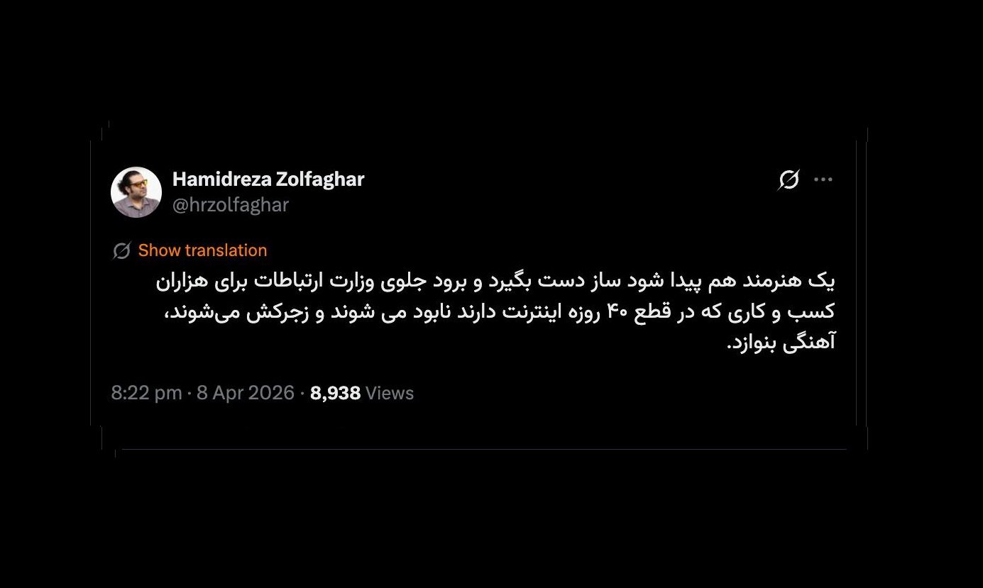خانه/سیاستبهتر است به جلوی دبیرخانه شورای عالی امنیت ملی برود؛ مابقی کاره ای نیستندخواندن1 دقیقه -پنجشنبه 1405/02/10 - 19:11کد خبر24684اشتراکگذاری یک هنرمند هم پیدا شود ساز دست بگیرد و برود جلوی وزارت ارتباطات برای هزاران کسب و کاری که در قطع ۴۰ روزه اینترنت دارند نابود می شوند و زجرکش میشوند، آهنگی بنوازد.— Hamidreza Zolfaghar (@hrzolfaghar) April 8, 2026 کمتر از یک دقیقه زمان بگذارید، ثبتنام کنید و نظرتان را زیر همین پست به اشتراک بگذارید.پیامهای توهینآمیز و یا حاوی دعوت به خشونت حذف خواهند شد.ثبت نامدر ادامه بخوانید این بار هم…اگرچه هیچگاه «حداقل به این زودی» واقعیت و جزییات امور این روزها توسط هر سه کشور درگیر، علنی نخواهد شدخواندن 1 دقیقه توصیه میکنم جلد دوم خاطرات جواد منصوری معاون وقت وزارت امور خارجه و سفیر پیشین جمهوری اسلامی در پاکستان را که بسیار مختصر و دقیق، وابستگی و عمق ارتباطی پاکستان با عربستان سعودی را با مصادیق روایت میکند مطالعه کنیدخواندن 0 آقای نبویان درود مذاکره یا عدم مذاکره و استمرار جنگ در اختیارات رهبر نیست؟ مگر کسی حتی در زمان رهبر فعلی میتواند بدون اذن و تصویب او راسا به چنین کاری همت گمارد؟خواندن 1 دقیقه به خیلی خیلی چیزهای دیگر با پایان یافتن این بحران متوجه خواهیم شد اکنون داغیمخواندن 1 دقیقه مسئول اینترنت همان طور که پیش از این در عبدی مدیا نوشتهام قرارگاه دفاع سایبری و تهدیدات نوین است که در دبیرخانه شورای عالی امنیت ملی مستقر است و فرماندهی آن با سردار سرلشکر پاسدار مصطفی ایزدی استخواندن 1 دقیقهباید خواندخاطرات اکبر هاشمی - ۱ اسفند ۱۳۷۸ - ملاقات عبدالله جاسبی و نگرانی از نتایج انتخاباتفیلم/ سردار مرتضی طلایی کجاست؟خاطرات اکبر هاشمی - ۱۹ شهريور ۱۳۷۸ - مذاکرات دو نفره سیاسی با واعظ طبسی تا هنگام بدرقه به سوی تهران هم ادامه داشته که در نهایت هاشمی ظاهرا از اینجا تصمیم به شرکت جدی در انتخابات مجلس ششم گرفتسوابق ادوار اخیر مجلس شورای اسلامی نشان داد که مجلس در راس امور نیست و در اختیارات فرمانده کل قوا و نیروهای مسلح در هیچ سطحی نمیتواند دخالت و یا مصوبه طی کند، چه برسد که نظارت کندآینده ایران با نامزدهای اعلام شده انتخابات ریاست جمهوری چه میشود؟ / گفتگو با دکتر تقی آزاد ارمکیمیشه با شما احساس خستگی کرد؟یک دامپزشک بسیجی بجای جراح گوش و حلق و بینی سرپرست شبکه بهداشت ایذه شد!خاطرات اکبر هاشمی - ۱۴ شهريور ۱۳۷۸ - دیدار مدیران ارشد دستگاه قضایی با هاشمی رفسنجانی و گله آنان از بی توجهی هاشمی شاهرودی رییس جدید قوه قضاییه ادامه داردخاطرات اکبر هاشمی - ۱۶ شهريور ۱۳۷۸ - در ادامه تلاش های مرحوم واعظ طبسی که در دیدارهای مکرر برای تشویق هاشمی به شرکت در انتخابات اقدام میکرد این بار هم او با هاشمی ملاقات کردخاطرات اکبر هاشمی - ۱۸ شهريور ۱۳۷۸ - ادامه بازدید ها از متعلقات و ابنیه و آثار آستان قدس