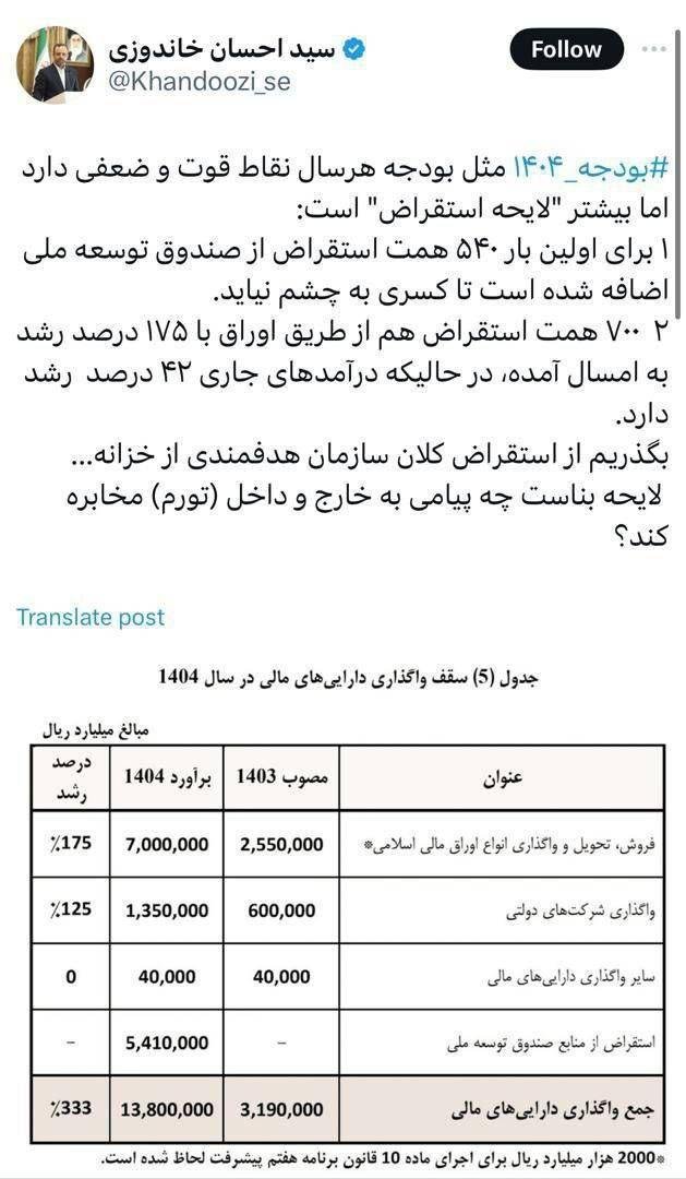 الرئيسية/اقتصاديانتقاد وزير الاقتصاد في الحكومة السابقة على مشروع قانون موازنة 2025: معظم مشروع القانون اقتراض!يقرأ0 -الأربعاء 2024/10/30 - 18:56كود الأخبار:7764يشارك Take less than a minute, register and share your opinion under this post.Insulting or inciting messages will be deleted.اشتراكالقادم بعد ذلك العلاقة والرقابة بين البنك المركزي والهيئة العليا للرقابة التابعة له وبين صناديق البحث والتكنولوجيا.خواندن دقيقتان الإهمال في مكافحة ومواجهة غسيل الأموال في صناديق البحث والتكنولوجيا.خواندن دقيقة واحدة عزل (إقالة) الرئيس التنفيذي لإحدى الشركات التابعة لـ "جادرملو" بسبب مكاسب/مدفوعات غير تقليدية (مفرطة).خواندن دقيقة واحدة السيد رئيس شؤون الإعلام الحكومي، تحية طيبة. هل تتذكر هذه التغريدة الخاصة بك؟خواندن دقيقة واحدة تحياتي سيد عزيزي، يجب أولاً على المدعي العام والثوري لطهران، ووزير الشؤون الاقتصادية والمالية شخصياً، ورئيس منظمة الضرائب الوطنية، التحقيق في السبب والدافع والإرادة التي تجعلهم عاجزين أو غير قادرين على تحديد ما إذا كانت مجموعة زاوية المالية متورطةخواندن دقيقة واحدةالأكثر قراءةذكريات أكبر هاشمي رفسنجاني _ 1 اسفند 1378 ولقاء هو بعبدالله جاسبي وقلقه على نتائج الانتخاباتفیلم/أين العمید مرتضى طلاي؟مذكرات أكبر الهاشمي ــ 19 شهريفر 1378ـ استمرت المفاوضات السياسية بين الرجلين مع واز الطبسي حتى اصطحبه إلى طهران، وفي النهاية قرر الهاشمي على ما يبدو أن يخوض انتخابات البرلمان السادس بجدية من هنا.تشير سجلات المجلس الإسلامي الحديثة إلى أن البرلمان ليس رئيس الشؤون ولا يمكنه التدخل أو الموافقة على صلاحيات القائد العام للقوات المسلحة على أي مستوى ناهيك عن الإشراف عليها.ماذا سيحدث لمستقبل إيران مع المرشحين المعلنين للانتخابات الرئاسية؟ / حوار مع الدكتور تقي آزاد ارامكيهل يمكن الشعور بالتعب معك؟تعيين طبيب بيطري من قوا الباسيج رئيساً للشبكة الصحية بدلاً من جراح الأذن والأنف والحنجرة!مذكرات أكبر هاشمي ــ 14 سبتمبر 1378 ــ استمرت لقاءات كبار مديري الجهاز القضائي مع هاشمي رفسنجاني وشكواهم من إهمال رئيس القضاء الجديد هاشمي الشاهرودي.مذكرات أكبر الهاشمي -16 شهريور 1378- التقى الهاشمي مرة أخرى هذه المرة بعد أن التقى الراحل واز الطبسي بجهود عدة لتشجيع الهاشمي على المشاركة في الانتخابات.مذكرات اكبر الهاشمي-18 شهريفر 1378-استمرار جولة الممتلكات والمباني والأعمال في أستان المقدس