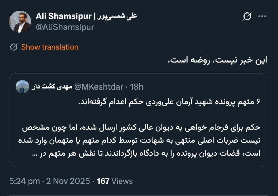 الرئيسية/قانونيعندما يتم رفع أي قضية على عجل ودون اتباع قواعد الإجراءات الجنائية، حتى لو أدى ذلك إلى النتيجة المرجوة في قاعة المحكمة...يقرأدقيقة واحدة -الثلاثاء 2025/11/04 - 00:36كود الأخبار:23346يشارك وفي المراحل المقبلة، وخصوصاً في قضية إزهاق الحياة في المحكمة العليا، فإنها تواجه عيوباً شكلية وموضوعية.وفي المراحل المقبلة، وخصوصاً في قضية إزهاق الحياة في المحكمة العليا، فإنها تواجه عيوباً شكلية وموضوعية.ولهذا السبب لا ينبغي للسرعة أن تحل محل الدقةإن حقيقة أن قضاة المحكمة العليا حريصون جدًا على إزهاق الحياة ومحاولة اكتشاف الحقيقة من أجل الوصول إلى إقناع الضمير أمر يستحق الثناء.این خبر نیست. روضه است. https://t.co/pMvtiJt04e— Ali Shamsipur | علی شمسیپور (@AliShamsipur) November 2, 2025⭕️ وقتی هر پرونده ای بدون رعایت نظامات آمره دادرسی کیفری با شتاب و هیجان تشکیل شود، حتی اگر در دادسرا و دادگاه، منتج به نتیجه مطلوب شود در مراحل بعدی بخصوص در سلب حیات در دیوان عالی کشور، با ایرادات شکلی و ماهوی مواجه میشود.🔸 برای همین است که سرعت نباید جایگزین دقت شود…— AbdiMedia - Abdollah Abdi (@abdolah_abdi) November 3, 2025 Take less than a minute, register and share your opinion under this post.Insulting or inciting messages will be deleted.اشتراكالقادم بعد ذلك هل تتذكر مذكرتي المُغلقة الموجهة إلى رئيس السلطة القضائية بعد قصف سجن إيفين بالصواريخ؟خواندن دقيقة واحدة مهمات نقابة المحامين في البرنامج الوطني لمكافحة غسيل الأموال وتمويل الإرهابخواندن دقيقتان هل هذا المتحدث على علم بالصلاحيات الواسعة الممنوحة للمحكمة الخاصة لرجال الدين للسماح بالتحقيق وجمع المعلومات من المتهمين والمشتبه بهم والأشخاص المرتبطين بهم؟خواندن دقيقة واحدة محسني إجیه، رئيس السلطة القضائية: لا يمكننا نشر أي محتوى غير صحيح وغير دقيق باسم مكافحة الفساد.خواندن دقيقة واحدة ماذا يحدث حقاً في مجلس إدارة نقابة محاميي جهارمحال وبختياري؟خواندن دقيقة واحدةالأكثر قراءةذكريات أكبر هاشمي رفسنجاني _ 1 اسفند 1378 ولقاء هو بعبدالله جاسبي وقلقه على نتائج الانتخاباتفیلم/أين العمید مرتضى طلاي؟مذكرات أكبر الهاشمي ــ 19 شهريفر 1378ـ استمرت المفاوضات السياسية بين الرجلين مع واز الطبسي حتى اصطحبه إلى طهران، وفي النهاية قرر الهاشمي على ما يبدو أن يخوض انتخابات البرلمان السادس بجدية من هنا.تشير سجلات المجلس الإسلامي الحديثة إلى أن البرلمان ليس رئيس الشؤون ولا يمكنه التدخل أو الموافقة على صلاحيات القائد العام للقوات المسلحة على أي مستوى ناهيك عن الإشراف عليها.ماذا سيحدث لمستقبل إيران مع المرشحين المعلنين للانتخابات الرئاسية؟ / حوار مع الدكتور تقي آزاد ارامكيهل يمكن الشعور بالتعب معك؟تعيين طبيب بيطري من قوا الباسيج رئيساً للشبكة الصحية بدلاً من جراح الأذن والأنف والحنجرة!مذكرات أكبر هاشمي ــ 14 سبتمبر 1378 ــ استمرت لقاءات كبار مديري الجهاز القضائي مع هاشمي رفسنجاني وشكواهم من إهمال رئيس القضاء الجديد هاشمي الشاهرودي.مذكرات أكبر الهاشمي -16 شهريور 1378- التقى الهاشمي مرة أخرى هذه المرة بعد أن التقى الراحل واز الطبسي بجهود عدة لتشجيع الهاشمي على المشاركة في الانتخابات.مذكرات اكبر الهاشمي-18 شهريفر 1378-استمرار جولة الممتلكات والمباني والأعمال في أستان المقدس