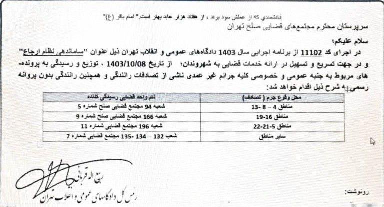 الرئيسية/قانونيتحديد الفروع التي تتعامل مع جميع الجرائم غير المقصودة التي تسببها الحوادث المرورية والقيادة بدون رخصةيقرأدقيقة واحدة -الأربعاء 2025/01/29 - 16:23كود الأخبار:12584يشارك رئيس المحاكم العامة والثورية في طهران في رسالة موجهة إلى المشرفين على المجمعات القضائية للسلام في طهرانفي رسالة موجهة إلى المشرفين على مجمعات صلح القضائية في طهران، عين رئيس المحاكم العامة والثورية في طهران الفروع التي تتعامل مع القضايا المتعلقة بالجوانب العامة والخاصة لجميع الجرائم غير المقصودة الناتجة عن حوادث المرور، وكذلك القيادة بدون رخصة رسمية. Take less than a minute, register and share your opinion under this post.Insulting or inciting messages will be deleted.اشتراكالقادم بعد ذلك هل تتذكر مذكرتي المُغلقة الموجهة إلى رئيس السلطة القضائية بعد قصف سجن إيفين بالصواريخ؟خواندن دقيقة واحدة مهمات نقابة المحامين في البرنامج الوطني لمكافحة غسيل الأموال وتمويل الإرهابخواندن دقيقتان هل هذا المتحدث على علم بالصلاحيات الواسعة الممنوحة للمحكمة الخاصة لرجال الدين للسماح بالتحقيق وجمع المعلومات من المتهمين والمشتبه بهم والأشخاص المرتبطين بهم؟خواندن دقيقة واحدة محسني إجیه، رئيس السلطة القضائية: لا يمكننا نشر أي محتوى غير صحيح وغير دقيق باسم مكافحة الفساد.خواندن دقيقة واحدة ماذا يحدث حقاً في مجلس إدارة نقابة محاميي جهارمحال وبختياري؟خواندن دقيقة واحدةالأكثر قراءةذكريات أكبر هاشمي رفسنجاني _ 1 اسفند 1378 ولقاء هو بعبدالله جاسبي وقلقه على نتائج الانتخاباتفیلم/أين العمید مرتضى طلاي؟مذكرات أكبر الهاشمي ــ 19 شهريفر 1378ـ استمرت المفاوضات السياسية بين الرجلين مع واز الطبسي حتى اصطحبه إلى طهران، وفي النهاية قرر الهاشمي على ما يبدو أن يخوض انتخابات البرلمان السادس بجدية من هنا.تشير سجلات المجلس الإسلامي الحديثة إلى أن البرلمان ليس رئيس الشؤون ولا يمكنه التدخل أو الموافقة على صلاحيات القائد العام للقوات المسلحة على أي مستوى ناهيك عن الإشراف عليها.ماذا سيحدث لمستقبل إيران مع المرشحين المعلنين للانتخابات الرئاسية؟ / حوار مع الدكتور تقي آزاد ارامكيهل يمكن الشعور بالتعب معك؟تعيين طبيب بيطري من قوا الباسيج رئيساً للشبكة الصحية بدلاً من جراح الأذن والأنف والحنجرة!مذكرات أكبر هاشمي ــ 14 سبتمبر 1378 ــ استمرت لقاءات كبار مديري الجهاز القضائي مع هاشمي رفسنجاني وشكواهم من إهمال رئيس القضاء الجديد هاشمي الشاهرودي.مذكرات أكبر الهاشمي -16 شهريور 1378- التقى الهاشمي مرة أخرى هذه المرة بعد أن التقى الراحل واز الطبسي بجهود عدة لتشجيع الهاشمي على المشاركة في الانتخابات.مذكرات اكبر الهاشمي-18 شهريفر 1378-استمرار جولة الممتلكات والمباني والأعمال في أستان المقدس