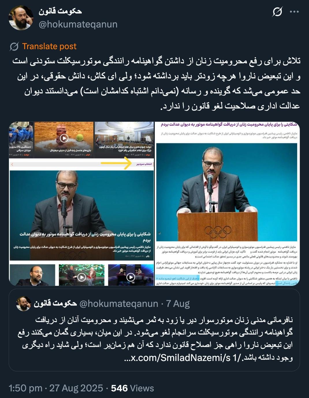 الرئيسية/قانونيومن أكبر المشاكل والأضرار التي يتعرض لها المسؤولون عدم إلمامهم القانوني بالقوانين وحتى بالأنظمة القانونية، والأسوأ من ذلك عدم استشارة وقبول آراء الخبراء القانونيين وحتى المديرين القانونيين لشركاتهميقرأدقيقة واحدة -الجمعة 2025/08/29 - 10:51كود الأخبار:22366يشارك تلاش برای رفع محرومیت زنان از داشتن گواهینامه رانندگی موتورسیکلت ستودنی است و این تبعیض ناروا هرچه زودتر باید برداشته شود؛ ولی ای کاش، دانش حقوقی، در این حد عمومی میشد که گوینده و رسانه (نمیدانم اشتباه کدامشان است) میدانستند دیوان عدالت اداری صلاحیت لغو قانون را ندارد. https://t.co/tmJ8UlIyM7 pic.twitter.com/zRzbbmsGwU— حکومت قانون (@hokumateqanun) August 27, 2025🔴 دروداز بزرگترین مشکلات و آسیبهای مسئولان، همین عدم تسلط حقوقی به قوانین و حتی نظامات حقوقی و بدتر عدم مشورت و پذیرش نظر اصحاب حقوق و حتی مدیران حقوقی مجموعه خودشان است.— AbdiMedia - Abdollah Abdi (@abdolah_abdi) August 28, 2025 Take less than a minute, register and share your opinion under this post.Insulting or inciting messages will be deleted.اشتراكالقادم بعد ذلك هل تتذكر مذكرتي المُغلقة الموجهة إلى رئيس السلطة القضائية بعد قصف سجن إيفين بالصواريخ؟خواندن دقيقة واحدة مهمات نقابة المحامين في البرنامج الوطني لمكافحة غسيل الأموال وتمويل الإرهابخواندن دقيقتان هل هذا المتحدث على علم بالصلاحيات الواسعة الممنوحة للمحكمة الخاصة لرجال الدين للسماح بالتحقيق وجمع المعلومات من المتهمين والمشتبه بهم والأشخاص المرتبطين بهم؟خواندن دقيقة واحدة محسني إجیه، رئيس السلطة القضائية: لا يمكننا نشر أي محتوى غير صحيح وغير دقيق باسم مكافحة الفساد.خواندن دقيقة واحدة ماذا يحدث حقاً في مجلس إدارة نقابة محاميي جهارمحال وبختياري؟خواندن دقيقة واحدةالأكثر قراءةذكريات أكبر هاشمي رفسنجاني _ 1 اسفند 1378 ولقاء هو بعبدالله جاسبي وقلقه على نتائج الانتخاباتفیلم/أين العمید مرتضى طلاي؟مذكرات أكبر الهاشمي ــ 19 شهريفر 1378ـ استمرت المفاوضات السياسية بين الرجلين مع واز الطبسي حتى اصطحبه إلى طهران، وفي النهاية قرر الهاشمي على ما يبدو أن يخوض انتخابات البرلمان السادس بجدية من هنا.تشير سجلات المجلس الإسلامي الحديثة إلى أن البرلمان ليس رئيس الشؤون ولا يمكنه التدخل أو الموافقة على صلاحيات القائد العام للقوات المسلحة على أي مستوى ناهيك عن الإشراف عليها.ماذا سيحدث لمستقبل إيران مع المرشحين المعلنين للانتخابات الرئاسية؟ / حوار مع الدكتور تقي آزاد ارامكيهل يمكن الشعور بالتعب معك؟تعيين طبيب بيطري من قوا الباسيج رئيساً للشبكة الصحية بدلاً من جراح الأذن والأنف والحنجرة!مذكرات أكبر هاشمي ــ 14 سبتمبر 1378 ــ استمرت لقاءات كبار مديري الجهاز القضائي مع هاشمي رفسنجاني وشكواهم من إهمال رئيس القضاء الجديد هاشمي الشاهرودي.مذكرات أكبر الهاشمي -16 شهريور 1378- التقى الهاشمي مرة أخرى هذه المرة بعد أن التقى الراحل واز الطبسي بجهود عدة لتشجيع الهاشمي على المشاركة في الانتخابات.مذكرات اكبر الهاشمي-18 شهريفر 1378-استمرار جولة الممتلكات والمباني والأعمال في أستان المقدس