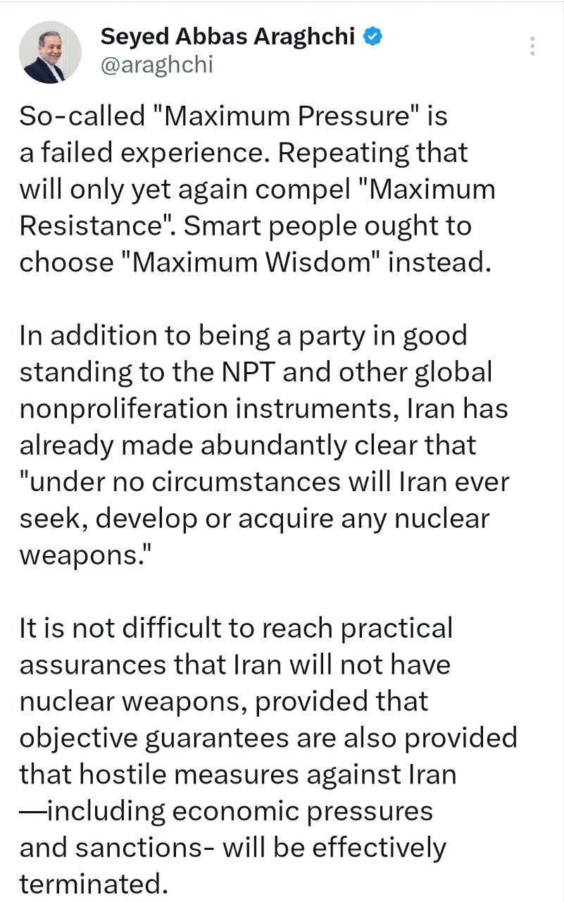 الرئيسية/سياسةعراقجي: إيران لا تسعى إلى صنع قنبلة ذريةيقرأدقيقة واحدة -الخميس 2025/02/06 - 02:03كود الأخبار:13003يشارك ما يسمى "الضغط الأقصى" هو تجربة فاشلة.ما يسمى "الضغط الأقصى" هو تجربة فاشلة. سيؤدي تكرارها فقط إلى "أقصى قدر من المقاومة" مرة أخرى. يختار الأشخاص الأذكياء "أقصى قدر من العقلانية" بدلا من ذلك.وبالإضافة إلى كونها طرفا ملتزما بمعاهدة عدم انتشار الأسلحة النووية وغيرها من الصكوك العالمية لحظر الانتشار، أوضحت إيران بالفعل أن "إيران لن تسعى إلى السعي إلى امتلاك سلاح نووي أو إنتاجه أو حيازته تحت أي ظرف من الظروف".وليس من الصعب الحصول على ضمانات عملية بأن إيران لن تحصل على سلاح نووي، شريطة أن يتم توفير ضمانات موضوعية بشكل متبادل لوضع حد فعال للأعمال العدائية ضد إيران، بما في ذلك الضغط الاقتصادي والعقوبات. Take less than a minute, register and share your opinion under this post.Insulting or inciting messages will be deleted.اشتراكالقادم بعد ذلك بور محمدي: نحن متهورون في حماية المعلومات.خواندن دقيقة واحدة تاج زاده في مقابلة مع مجلة لوبوئن: يمكن للشعب أن ينهي حكم رجال الدين في إيران.خواندن %count دقائق بعد شكوى حميد رسايي واستفسار (طلب معلومات/توضيح) المدعي العام من محكمة رجال الدين الخاصة ومجلس صيانة الدستور.خواندن دقيقة واحدة تحياتي للسيد محسني إژيه، رئيس السلطة القضائية، والسيد مرتضوي، مساعد الإشراف والتفتيش في المحكمة العليا، والسيد دهقاني، رئيس القضاء في محافظة خوزستان.خواندن دقيقة واحدة كل تعليقاتنا وتغريداتنا في هذا الفضاء ستبقى إرثاً حتى لو حذفناها، وفي المستقبل سيُحاكموننا (أو سيحكمون علينا) بقسوة بسببها جميعاً.خواندن دقيقة واحدةالأكثر قراءةذكريات أكبر هاشمي رفسنجاني _ 1 اسفند 1378 ولقاء هو بعبدالله جاسبي وقلقه على نتائج الانتخاباتفیلم/أين العمید مرتضى طلاي؟مذكرات أكبر الهاشمي ــ 19 شهريفر 1378ـ استمرت المفاوضات السياسية بين الرجلين مع واز الطبسي حتى اصطحبه إلى طهران، وفي النهاية قرر الهاشمي على ما يبدو أن يخوض انتخابات البرلمان السادس بجدية من هنا.تشير سجلات المجلس الإسلامي الحديثة إلى أن البرلمان ليس رئيس الشؤون ولا يمكنه التدخل أو الموافقة على صلاحيات القائد العام للقوات المسلحة على أي مستوى ناهيك عن الإشراف عليها.ماذا سيحدث لمستقبل إيران مع المرشحين المعلنين للانتخابات الرئاسية؟ / حوار مع الدكتور تقي آزاد ارامكيهل يمكن الشعور بالتعب معك؟تعيين طبيب بيطري من قوا الباسيج رئيساً للشبكة الصحية بدلاً من جراح الأذن والأنف والحنجرة!مذكرات أكبر هاشمي ــ 14 سبتمبر 1378 ــ استمرت لقاءات كبار مديري الجهاز القضائي مع هاشمي رفسنجاني وشكواهم من إهمال رئيس القضاء الجديد هاشمي الشاهرودي.مذكرات أكبر الهاشمي -16 شهريور 1378- التقى الهاشمي مرة أخرى هذه المرة بعد أن التقى الراحل واز الطبسي بجهود عدة لتشجيع الهاشمي على المشاركة في الانتخابات.مذكرات اكبر الهاشمي-18 شهريفر 1378-استمرار جولة الممتلكات والمباني والأعمال في أستان المقدس