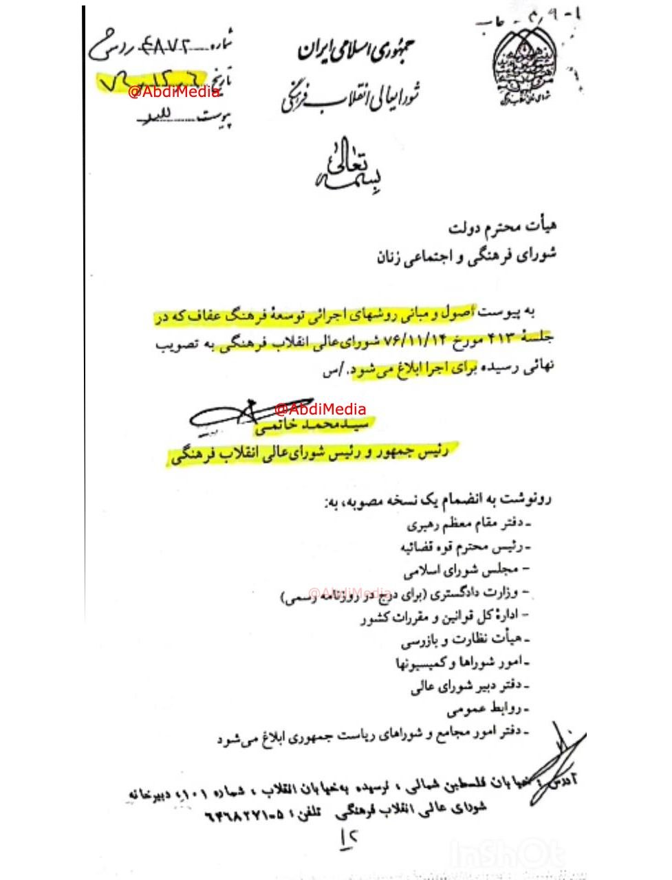 الرئيسية/سياسة/السياسة الداخليةالسيد الدكتور مسعود بزشكيان تحيةيقرأدقيقة واحدة -الثلاثاء 2024/10/22 - 17:19كود الأخبار:5876يشارك يرجى ضمان أن هذا القرار الصادر عن المجلس الأعلى للثورة الثقافية والذي وقعه رئيسه السيد محمد خاتمي في تاريخ 25 فبراير 1998 وتم إبلاغه للتنفيذ بعلم آية الله خامنئي، وأن قرارات الحجاب والعفاف الأخرى الصادرة عن هذا المجلس الأعلى والتي وقعها رؤساء الجمهور الآخرون وتم إبلاغها للتنفيذ، ولا حتى السلطة القضائية لديها القدرة على معارضتها، ستقومون بتعديلها أو إلغائها. هل تضمنون ذلك؟ السيد الدكتور سعيد جليلي أسألكم أيضاً: كيف ستتعاملون بكل قوة حكومتكم في الظل والضوء؟ هل تستطيعون؟ Take less than a minute, register and share your opinion under this post.Insulting or inciting messages will be deleted.اشتراكالقادم بعد ذلك وأخيرا دعم النائب الأول لرئيس الجمهورية لوزير الشؤون الاقتصادية والماليةخواندن 0 كيهان: في عنبر النساء في سجن إيفين، سجينات سياسيات بحوزتهم مشروبات كحولية مصنوعة يدوياخواندن دقيقة واحدة اهتمام مجلس صيانة الدستور بالغموض في موقفه بشأن قانون الحجاب والعفافخواندن دقيقة واحدة دكتور عليرضا رييسي، معاون الصحة في وزارة الصحة، في خطوة مشكورة، طلب في رسالة إلى الدكتور ظفرقندي إعفاءً ضريبيًا لجميع العاملين في القطاع الصحي، مثل الاقتراح المطروح للممرضاتخواندن 0 المتحدث باسم الحكومة: تم تعيين محمدصادق معتمديان كحاكم لطهران وأكبر بهنامجو كحاكم لقُم من قبل مجلس الوزراء.خواندن 0الأكثر قراءةذكريات أكبر هاشمي رفسنجاني _ 1 اسفند 1378 ولقاء هو بعبدالله جاسبي وقلقه على نتائج الانتخاباتفیلم/أين العمید مرتضى طلاي؟مذكرات أكبر الهاشمي ــ 19 شهريفر 1378ـ استمرت المفاوضات السياسية بين الرجلين مع واز الطبسي حتى اصطحبه إلى طهران، وفي النهاية قرر الهاشمي على ما يبدو أن يخوض انتخابات البرلمان السادس بجدية من هنا.تشير سجلات المجلس الإسلامي الحديثة إلى أن البرلمان ليس رئيس الشؤون ولا يمكنه التدخل أو الموافقة على صلاحيات القائد العام للقوات المسلحة على أي مستوى ناهيك عن الإشراف عليها.ماذا سيحدث لمستقبل إيران مع المرشحين المعلنين للانتخابات الرئاسية؟ / حوار مع الدكتور تقي آزاد ارامكيهل يمكن الشعور بالتعب معك؟تعيين طبيب بيطري من قوا الباسيج رئيساً للشبكة الصحية بدلاً من جراح الأذن والأنف والحنجرة!مذكرات أكبر هاشمي ــ 14 سبتمبر 1378 ــ استمرت لقاءات كبار مديري الجهاز القضائي مع هاشمي رفسنجاني وشكواهم من إهمال رئيس القضاء الجديد هاشمي الشاهرودي.مذكرات أكبر الهاشمي -16 شهريور 1378- التقى الهاشمي مرة أخرى هذه المرة بعد أن التقى الراحل واز الطبسي بجهود عدة لتشجيع الهاشمي على المشاركة في الانتخابات.مذكرات اكبر الهاشمي-18 شهريفر 1378-استمرار جولة الممتلكات والمباني والأعمال في أستان المقدس