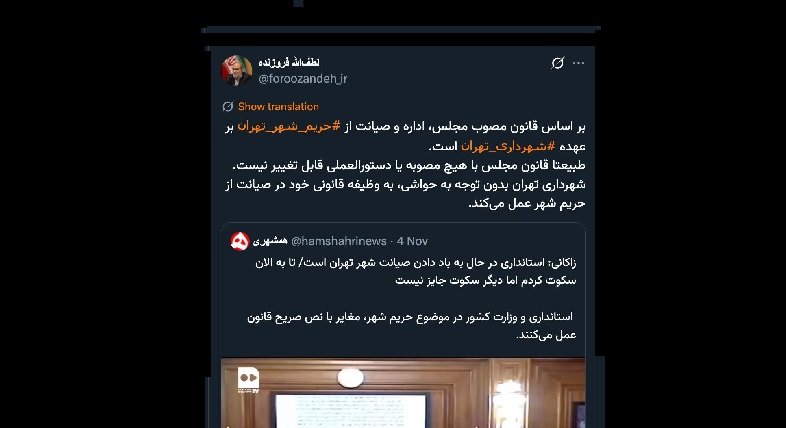 الرئيسية/سياسةسعادة نائب عمدة طهران، التحية. بالطبع، أنتم على دراية بأن محافظ طهران، بصفته أعلى سلطة سياسية في المحافظة، إذا علم بأي مخالفة أو جريمة...يقرأدقيقة واحدة -السبت 2025/11/08 - 00:22كود الأخبار:23406يشارك بل إنه ملزم قانونًا بالتدخل من خلال القانون من خلال الاستشارة مع السلطات الرقابية أو حتى النيابة العامة والثورة في طهران لمنع استمرار الجريمة أو المخالفة.بر اساس قانون مصوب مجلس، اداره و صیانت از #حریم_شهر_تهران بر عهده #شهرداری_تهران است.طبیعتا قانون مجلس با هیچ مصوبه یا دستورالعملی قابل تغییر نیست.شهرداری تهران بدون توجه به حواشی، به وظیفه قانونی خود در صیانت از حریم شهر عمل میکند. https://t.co/U1EUHAF4uK— لطفالله فروزنده (@foroozandeh_ir) November 6, 2025⭕️ آقای معاون شهردار تهراندرود💢البته حتما مستحضرید استاندار تهران در مقام عالی ترین مقام سیاسی استان اگر تخلف یا جرمی را مطلع شود، حق بلکه تکلیف دارد از طریق قانونی با جلب نظر مقامات نظارتی یا حتی #دادستان عمومی و انقلاب تهران دخالت کند و مانع استمرار جرم یا تخلف شود.— AbdiMedia - Abdollah Abdi (@abdolah_abdi) November 7, 2025 Take less than a minute, register and share your opinion under this post.Insulting or inciting messages will be deleted.اشتراكالقادم بعد ذلك بور محمدي: نحن متهورون في حماية المعلومات.خواندن دقيقة واحدة تاج زاده في مقابلة مع مجلة لوبوئن: يمكن للشعب أن ينهي حكم رجال الدين في إيران.خواندن %count دقائق بعد شكوى حميد رسايي واستفسار (طلب معلومات/توضيح) المدعي العام من محكمة رجال الدين الخاصة ومجلس صيانة الدستور.خواندن دقيقة واحدة تحياتي للسيد محسني إژيه، رئيس السلطة القضائية، والسيد مرتضوي، مساعد الإشراف والتفتيش في المحكمة العليا، والسيد دهقاني، رئيس القضاء في محافظة خوزستان.خواندن دقيقة واحدة كل تعليقاتنا وتغريداتنا في هذا الفضاء ستبقى إرثاً حتى لو حذفناها، وفي المستقبل سيُحاكموننا (أو سيحكمون علينا) بقسوة بسببها جميعاً.خواندن دقيقة واحدةالأكثر قراءةذكريات أكبر هاشمي رفسنجاني _ 1 اسفند 1378 ولقاء هو بعبدالله جاسبي وقلقه على نتائج الانتخاباتفیلم/أين العمید مرتضى طلاي؟مذكرات أكبر الهاشمي ــ 19 شهريفر 1378ـ استمرت المفاوضات السياسية بين الرجلين مع واز الطبسي حتى اصطحبه إلى طهران، وفي النهاية قرر الهاشمي على ما يبدو أن يخوض انتخابات البرلمان السادس بجدية من هنا.تشير سجلات المجلس الإسلامي الحديثة إلى أن البرلمان ليس رئيس الشؤون ولا يمكنه التدخل أو الموافقة على صلاحيات القائد العام للقوات المسلحة على أي مستوى ناهيك عن الإشراف عليها.ماذا سيحدث لمستقبل إيران مع المرشحين المعلنين للانتخابات الرئاسية؟ / حوار مع الدكتور تقي آزاد ارامكيهل يمكن الشعور بالتعب معك؟تعيين طبيب بيطري من قوا الباسيج رئيساً للشبكة الصحية بدلاً من جراح الأذن والأنف والحنجرة!مذكرات أكبر هاشمي ــ 14 سبتمبر 1378 ــ استمرت لقاءات كبار مديري الجهاز القضائي مع هاشمي رفسنجاني وشكواهم من إهمال رئيس القضاء الجديد هاشمي الشاهرودي.مذكرات أكبر الهاشمي -16 شهريور 1378- التقى الهاشمي مرة أخرى هذه المرة بعد أن التقى الراحل واز الطبسي بجهود عدة لتشجيع الهاشمي على المشاركة في الانتخابات.مذكرات اكبر الهاشمي-18 شهريفر 1378-استمرار جولة الممتلكات والمباني والأعمال في أستان المقدس