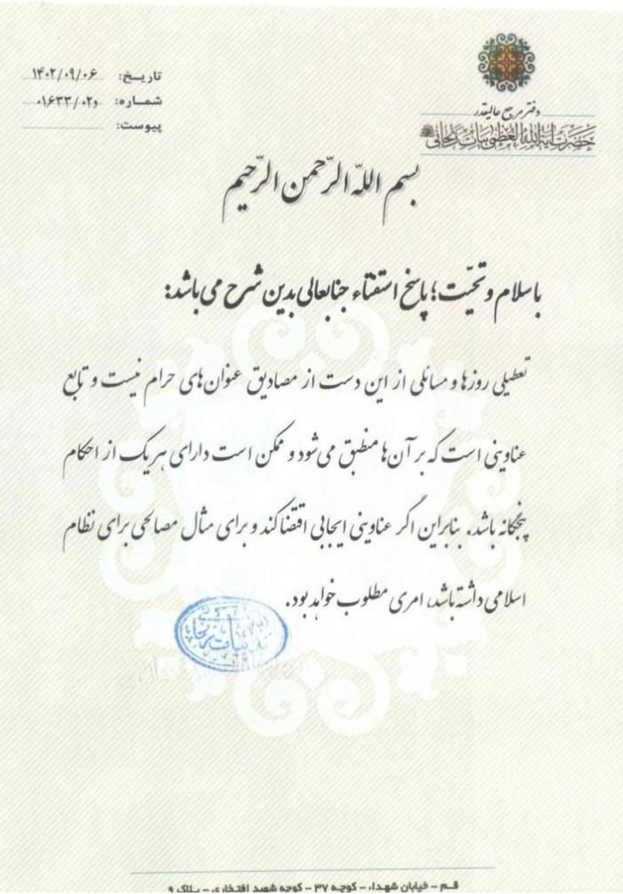الرئيسية/سياسة/الحكومةمكتب آية الله اسد الله بيات زنجاني يكشف عن استطلاع العام الماضي بشأن إغلاق السبتيقرأ0 -الأحد 2024/10/20 - 00:35كود الأخبار:5254يشارك Take less than a minute, register and share your opinion under this post.Insulting or inciting messages will be deleted.اشتراكالقادم بعد ذلك السيد الرئيس رئيس المجلس الأعلى للأمن الوطني، لماذا لا تفتح المساجد 24 ساعة؟ وهل هناك مساجد أقل لأداء صلاة الصبح؟خواندن دقيقة واحدة مرحباً سيدي نائب الرئيس، هل كتبت ونشرت هذه التغريدة بأفكارك الخاصة؟خواندن دقيقة واحدة رد فعل المتحدث باسم الحكومة على الاعتقال الأخير لعدد من الكتاب والاقتصاديينخواندن دقيقة واحدة السيد بزشکیان! حفر 100 بئر في سهل طهران ونقل المياه من بحر عمان هدر للأموال/سيزيد من أزمة نقص المياه.خواندن دقيقة واحدة أخبار جيدة من المجلس الأعلى للفضاء الإلكتروني لا تصلنا / الخطوة الثانية لإزالة الحظر تعثرتخواندن دقيقتانالأكثر قراءةذكريات أكبر هاشمي رفسنجاني _ 1 اسفند 1378 ولقاء هو بعبدالله جاسبي وقلقه على نتائج الانتخاباتفیلم/أين العمید مرتضى طلاي؟مذكرات أكبر الهاشمي ــ 19 شهريفر 1378ـ استمرت المفاوضات السياسية بين الرجلين مع واز الطبسي حتى اصطحبه إلى طهران، وفي النهاية قرر الهاشمي على ما يبدو أن يخوض انتخابات البرلمان السادس بجدية من هنا.تشير سجلات المجلس الإسلامي الحديثة إلى أن البرلمان ليس رئيس الشؤون ولا يمكنه التدخل أو الموافقة على صلاحيات القائد العام للقوات المسلحة على أي مستوى ناهيك عن الإشراف عليها.ماذا سيحدث لمستقبل إيران مع المرشحين المعلنين للانتخابات الرئاسية؟ / حوار مع الدكتور تقي آزاد ارامكيهل يمكن الشعور بالتعب معك؟تعيين طبيب بيطري من قوا الباسيج رئيساً للشبكة الصحية بدلاً من جراح الأذن والأنف والحنجرة!مذكرات أكبر هاشمي ــ 14 سبتمبر 1378 ــ استمرت لقاءات كبار مديري الجهاز القضائي مع هاشمي رفسنجاني وشكواهم من إهمال رئيس القضاء الجديد هاشمي الشاهرودي.مذكرات أكبر الهاشمي -16 شهريور 1378- التقى الهاشمي مرة أخرى هذه المرة بعد أن التقى الراحل واز الطبسي بجهود عدة لتشجيع الهاشمي على المشاركة في الانتخابات.مذكرات اكبر الهاشمي-18 شهريفر 1378-استمرار جولة الممتلكات والمباني والأعمال في أستان المقدس