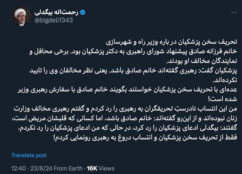 الرئيسية/سياسةحاج شیخ تحیة طیبةيقرأدقيقة واحدة -الجمعة 2024/10/11 - 09:19كود الأخبار:6615يشارك الشهادة التي قدمتها: السيد مسعود بزشكيان لم يجتمع مع آية الله خامنئي قبل الانتخابات، ولم يلتق حتى بأعضاء مكتب القيادة، أليس كذلك؟أردت أن أوضح أنني أتذكر؛ ولإحاطة الإخوة الكرام سأعيد نشرها.تذكر أنت أيضًامع فائق الاحترام Take less than a minute, register and share your opinion under this post.Insulting or inciting messages will be deleted.اشتراكالقادم بعد ذلك بور محمدي: نحن متهورون في حماية المعلومات.خواندن دقيقة واحدة تاج زاده في مقابلة مع مجلة لوبوئن: يمكن للشعب أن ينهي حكم رجال الدين في إيران.خواندن %count دقائق بعد شكوى حميد رسايي واستفسار (طلب معلومات/توضيح) المدعي العام من محكمة رجال الدين الخاصة ومجلس صيانة الدستور.خواندن دقيقة واحدة تحياتي للسيد محسني إژيه، رئيس السلطة القضائية، والسيد مرتضوي، مساعد الإشراف والتفتيش في المحكمة العليا، والسيد دهقاني، رئيس القضاء في محافظة خوزستان.خواندن دقيقة واحدة كل تعليقاتنا وتغريداتنا في هذا الفضاء ستبقى إرثاً حتى لو حذفناها، وفي المستقبل سيُحاكموننا (أو سيحكمون علينا) بقسوة بسببها جميعاً.خواندن دقيقة واحدةالأكثر قراءةذكريات أكبر هاشمي رفسنجاني _ 1 اسفند 1378 ولقاء هو بعبدالله جاسبي وقلقه على نتائج الانتخاباتفیلم/أين العمید مرتضى طلاي؟مذكرات أكبر الهاشمي ــ 19 شهريفر 1378ـ استمرت المفاوضات السياسية بين الرجلين مع واز الطبسي حتى اصطحبه إلى طهران، وفي النهاية قرر الهاشمي على ما يبدو أن يخوض انتخابات البرلمان السادس بجدية من هنا.تشير سجلات المجلس الإسلامي الحديثة إلى أن البرلمان ليس رئيس الشؤون ولا يمكنه التدخل أو الموافقة على صلاحيات القائد العام للقوات المسلحة على أي مستوى ناهيك عن الإشراف عليها.ماذا سيحدث لمستقبل إيران مع المرشحين المعلنين للانتخابات الرئاسية؟ / حوار مع الدكتور تقي آزاد ارامكيهل يمكن الشعور بالتعب معك؟تعيين طبيب بيطري من قوا الباسيج رئيساً للشبكة الصحية بدلاً من جراح الأذن والأنف والحنجرة!مذكرات أكبر هاشمي ــ 14 سبتمبر 1378 ــ استمرت لقاءات كبار مديري الجهاز القضائي مع هاشمي رفسنجاني وشكواهم من إهمال رئيس القضاء الجديد هاشمي الشاهرودي.مذكرات أكبر الهاشمي -16 شهريور 1378- التقى الهاشمي مرة أخرى هذه المرة بعد أن التقى الراحل واز الطبسي بجهود عدة لتشجيع الهاشمي على المشاركة في الانتخابات.مذكرات اكبر الهاشمي-18 شهريفر 1378-استمرار جولة الممتلكات والمباني والأعمال في أستان المقدس
