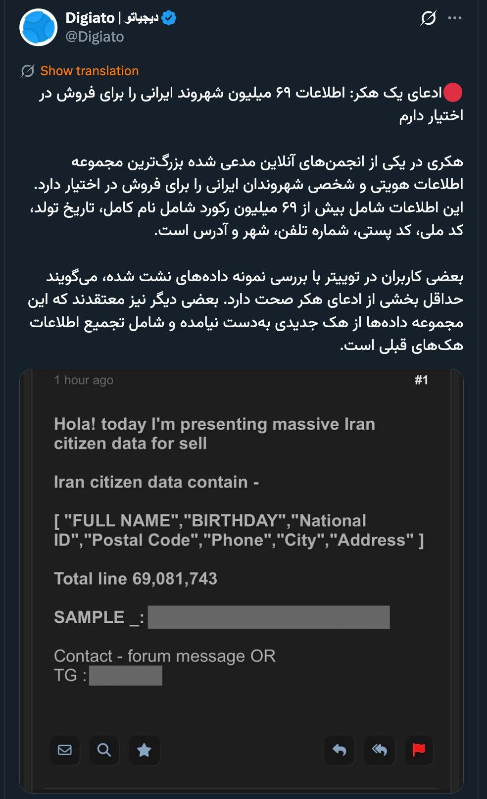 الرئيسية/سياسةكارثة تلو كارثة ناتجة عن انعدام الأمن في الشبكات الافتراضية (الاجتماعية) في البلاد.يقرأدقيقة واحدة -الاثنين 2025/12/15 - 13:56كود الأخبار:23934يشارك الرقابة (أو الإشراف) في البلاد هي مجرد مزحة.🔴ادعای یک هکر: اطلاعات ۶۹ میلیون شهروند ایرانی را برای فروش در اختیار دارمهکری در یکی از انجمنهای آنلاین مدعی شده بزرگترین مجموعه اطلاعات هویتی و شخصی شهروندان ایرانی را برای فروش در اختیار دارد. این اطلاعات شامل بیش از ۶۹ میلیون رکورد شامل نام کامل، تاریخ تولد، کد ملی، کد… pic.twitter.com/GskqJOhOqb— Digiato | دیجیاتو (@Digiato) December 14, 2025🔴 درودفاجعه پشت فاجعه ناشی از عدم امنیت شبکه های مجازی در کشور#نظارت_در_کشور_شوخی_است— AbdiMedia - Abdollah Abdi (@abdolah_abdi) December 14, 2025 Take less than a minute, register and share your opinion under this post.Insulting or inciting messages will be deleted.اشتراكالقادم بعد ذلك بور محمدي: نحن متهورون في حماية المعلومات.خواندن دقيقة واحدة تاج زاده في مقابلة مع مجلة لوبوئن: يمكن للشعب أن ينهي حكم رجال الدين في إيران.خواندن %count دقائق بعد شكوى حميد رسايي واستفسار (طلب معلومات/توضيح) المدعي العام من محكمة رجال الدين الخاصة ومجلس صيانة الدستور.خواندن دقيقة واحدة تحياتي للسيد محسني إژيه، رئيس السلطة القضائية، والسيد مرتضوي، مساعد الإشراف والتفتيش في المحكمة العليا، والسيد دهقاني، رئيس القضاء في محافظة خوزستان.خواندن دقيقة واحدة كل تعليقاتنا وتغريداتنا في هذا الفضاء ستبقى إرثاً حتى لو حذفناها، وفي المستقبل سيُحاكموننا (أو سيحكمون علينا) بقسوة بسببها جميعاً.خواندن دقيقة واحدةالأكثر قراءةذكريات أكبر هاشمي رفسنجاني _ 1 اسفند 1378 ولقاء هو بعبدالله جاسبي وقلقه على نتائج الانتخاباتفیلم/أين العمید مرتضى طلاي؟مذكرات أكبر الهاشمي ــ 19 شهريفر 1378ـ استمرت المفاوضات السياسية بين الرجلين مع واز الطبسي حتى اصطحبه إلى طهران، وفي النهاية قرر الهاشمي على ما يبدو أن يخوض انتخابات البرلمان السادس بجدية من هنا.تشير سجلات المجلس الإسلامي الحديثة إلى أن البرلمان ليس رئيس الشؤون ولا يمكنه التدخل أو الموافقة على صلاحيات القائد العام للقوات المسلحة على أي مستوى ناهيك عن الإشراف عليها.ماذا سيحدث لمستقبل إيران مع المرشحين المعلنين للانتخابات الرئاسية؟ / حوار مع الدكتور تقي آزاد ارامكيهل يمكن الشعور بالتعب معك؟تعيين طبيب بيطري من قوا الباسيج رئيساً للشبكة الصحية بدلاً من جراح الأذن والأنف والحنجرة!مذكرات أكبر هاشمي ــ 14 سبتمبر 1378 ــ استمرت لقاءات كبار مديري الجهاز القضائي مع هاشمي رفسنجاني وشكواهم من إهمال رئيس القضاء الجديد هاشمي الشاهرودي.مذكرات أكبر الهاشمي -16 شهريور 1378- التقى الهاشمي مرة أخرى هذه المرة بعد أن التقى الراحل واز الطبسي بجهود عدة لتشجيع الهاشمي على المشاركة في الانتخابات.مذكرات اكبر الهاشمي-18 شهريفر 1378-استمرار جولة الممتلكات والمباني والأعمال في أستان المقدس