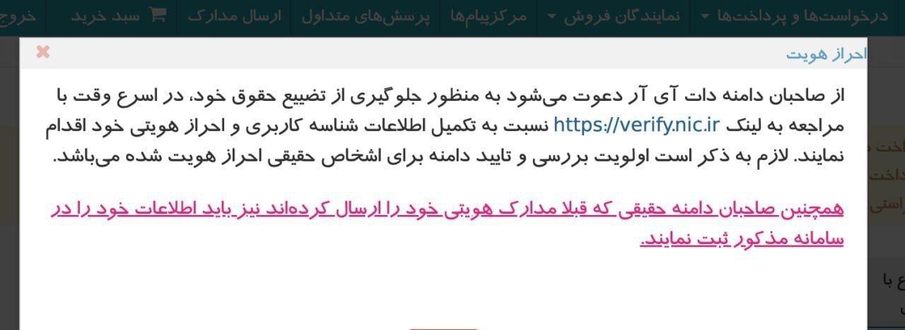 الرئيسية/ الاجتماعإذا كان لديك اسم نطاق على nic.ir ، فمن الآن فصاعدًا ، يجب عليك الرجوع إلى verify.nic.ir للمصادقة من أجل استخدام الخدمات المختلفة (تسجيل النطاق ، التجديد ، النقل ، إلخ).يقرأدقيقة واحدة -الثلاثاء 2024/10/15 - 00:14كود الأخبار:2388يشاركالصورة الصورة PreviousNextفي الوقت الحالي ، بدأ التحقق من هوية المستخدمين الإيرانيين الحقيقيين ، وسيتم التحقق من هوية المستخدمين الشرعيين والأجانب في وقت لاحق. يحتاج المستخدمون الذين لديهم معرفات مستخدمين متعددة إلى إكمال مصادقة معرف واحد فقط ، ويجب أن تنتظر مصادقة المعرفات المتبقية مرة أخرى. يجب على مالكي النطاقات الحقيقيين الذين قدموا وثائق الهوية تسجيل معلوماتهم في النظام المذكور أعلاه. Take less than a minute, register and share your opinion under this post.Insulting or inciting messages will be deleted.اشتراكالقادم بعد ذلك إنه شعور يتناسب تماماً مع الواقع.خواندن دقيقة واحدة تويتر يجيبخواندن دقيقة واحدة لقد كتبت على انفراد، ولكن يجب على جميع الناشطين المحليين والأجانب في الفضاء الإلكتروني الذين يعتقدون أنهم مجهولون أو لديهم مهمة عدم الكشف عن هويتهم أن يعرفوا ذلك.خواندن دقيقة واحدة سعر تذكرة الذهاب من تشابهار إلى طهران 12 مليون تومان! / بيع الماشية والأغنام لرحلة علاجية!خواندن دقيقة واحدة منشد الخرمشهري الشهير الذي لم ينشد احتجاجا على فقر الشعب وتحدث بلغة احتجاج الشعب بحضور مسؤولي البلاد!خواندن 0الأكثر قراءةذكريات أكبر هاشمي رفسنجاني _ 1 اسفند 1378 ولقاء هو بعبدالله جاسبي وقلقه على نتائج الانتخاباتفیلم/أين العمید مرتضى طلاي؟مذكرات أكبر الهاشمي ــ 19 شهريفر 1378ـ استمرت المفاوضات السياسية بين الرجلين مع واز الطبسي حتى اصطحبه إلى طهران، وفي النهاية قرر الهاشمي على ما يبدو أن يخوض انتخابات البرلمان السادس بجدية من هنا.تشير سجلات المجلس الإسلامي الحديثة إلى أن البرلمان ليس رئيس الشؤون ولا يمكنه التدخل أو الموافقة على صلاحيات القائد العام للقوات المسلحة على أي مستوى ناهيك عن الإشراف عليها.ماذا سيحدث لمستقبل إيران مع المرشحين المعلنين للانتخابات الرئاسية؟ / حوار مع الدكتور تقي آزاد ارامكيهل يمكن الشعور بالتعب معك؟تعيين طبيب بيطري من قوا الباسيج رئيساً للشبكة الصحية بدلاً من جراح الأذن والأنف والحنجرة!مذكرات أكبر هاشمي ــ 14 سبتمبر 1378 ــ استمرت لقاءات كبار مديري الجهاز القضائي مع هاشمي رفسنجاني وشكواهم من إهمال رئيس القضاء الجديد هاشمي الشاهرودي.مذكرات أكبر الهاشمي -16 شهريور 1378- التقى الهاشمي مرة أخرى هذه المرة بعد أن التقى الراحل واز الطبسي بجهود عدة لتشجيع الهاشمي على المشاركة في الانتخابات.مذكرات اكبر الهاشمي-18 شهريفر 1378-استمرار جولة الممتلكات والمباني والأعمال في أستان المقدس