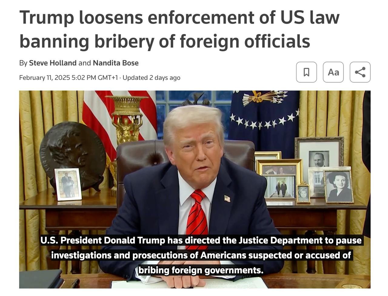 الرئيسية/عالميترامب يتوقف عن حظر الرشاوى على الأجانب !!يقرأ0 -الخميس 2025/02/13 - 13:42كود الأخبار:13453يشارك Take less than a minute, register and share your opinion under this post.Insulting or inciting messages will be deleted.اشتراكالقادم بعد ذلك ووصفت وزارة الخارجية الأمريكية اعتقال مصطفى تاج زاده أثناء إجازة من السجن ونقله إلى إيفين بأنه "تجاهل واضح لمبادئ الجمهورية الإسلامية والكرامة الإنسانية والعدالة".خواندن دقيقة واحدة الإعلانات والتحذيرات الأمريكية باللغة الفارسيةخواندن 0 ترامب عن كيفية إقناع حماس بقبول الاتفاق: تحدثتُ بلهجة حازمة، وكان ذلك كافيًا. هذا ما يُجدي نفعًا في عالمٍ قاسٍ كهذا: يجب أن تتحدث بلهجة حازمة.خواندن دقيقة واحدة فازت زعيمة المعارضة الفنزويلية ماريا كورينا ماتشادو بجائزة نوبل للسلام لعام 2025.خواندن 0 بيان حماس: نعلن التوصل لاتفاق ينهي الحرب على غزة وينسحب الاحتلال منها ويصل المساعدات الإنسانية لغزة ويتم تبادل الأسرى.خواندن دقيقة واحدةالأكثر قراءةذكريات أكبر هاشمي رفسنجاني _ 1 اسفند 1378 ولقاء هو بعبدالله جاسبي وقلقه على نتائج الانتخاباتفیلم/أين العمید مرتضى طلاي؟مذكرات أكبر الهاشمي ــ 19 شهريفر 1378ـ استمرت المفاوضات السياسية بين الرجلين مع واز الطبسي حتى اصطحبه إلى طهران، وفي النهاية قرر الهاشمي على ما يبدو أن يخوض انتخابات البرلمان السادس بجدية من هنا.تشير سجلات المجلس الإسلامي الحديثة إلى أن البرلمان ليس رئيس الشؤون ولا يمكنه التدخل أو الموافقة على صلاحيات القائد العام للقوات المسلحة على أي مستوى ناهيك عن الإشراف عليها.ماذا سيحدث لمستقبل إيران مع المرشحين المعلنين للانتخابات الرئاسية؟ / حوار مع الدكتور تقي آزاد ارامكيهل يمكن الشعور بالتعب معك؟تعيين طبيب بيطري من قوا الباسيج رئيساً للشبكة الصحية بدلاً من جراح الأذن والأنف والحنجرة!مذكرات أكبر هاشمي ــ 14 سبتمبر 1378 ــ استمرت لقاءات كبار مديري الجهاز القضائي مع هاشمي رفسنجاني وشكواهم من إهمال رئيس القضاء الجديد هاشمي الشاهرودي.مذكرات أكبر الهاشمي -16 شهريور 1378- التقى الهاشمي مرة أخرى هذه المرة بعد أن التقى الراحل واز الطبسي بجهود عدة لتشجيع الهاشمي على المشاركة في الانتخابات.مذكرات اكبر الهاشمي-18 شهريفر 1378-استمرار جولة الممتلكات والمباني والأعمال في أستان المقدس