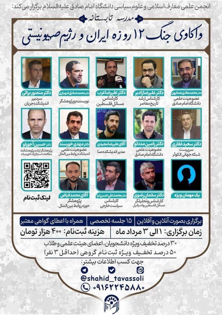 Home/PoliticsThe previous specialized course you didn't remember? I wanted to enroll quickly for the summer school entitled "The War of Iran and the Zionist Regime", which has a special guest.Read1 minute -Thursday 2025/07/17 - 22:51News Code:21471Share Related news If you want to participate in the specialized period of war and peace in Islam Take less than a minute, register and share your opinion under this post.Insulting or inciting messages will be deleted.Sign UpComming Up Next I remembered Dr. Sadegh Zibakalam's speech about six months ago, when he said: If we enter into a military conflict, whether the system remains or not, not a single electric pole will remain intact in Iran - are you listening?خواندن 0 If this public announcement is not hindered like other parts of the system's security megaproject, yesخواندن 1 minute Regardless of the result of the establishment or non-continuation of the establishment of the Islamic Republic; Should the main leadership option after Ayatollah Khamenei be acted in this way?خواندن 1 minute According to the significant custom of the seminary and jurisprudence, now we have to see which jurist will perform the funeral prayer for Ayatollah Khamenei?خواندن 1 minute In the news of his appointment, I wrote that he is the commander of the camp at the same time as the deputy commander of the army corpsخواندن 1 minuteMost ReadMemories of Akbar Hashemi - February 20, 2000 - Meeting with Abdullah Jasbi and Concerns About Election ResultsMovie / Where is Commander Morteza Talaie?Akbar Hashemi's memoirs - 1999 September 10 - The two-person political negotiations with Vaez Tabasi continued until he was escorted to Tehran, where Hashemi apparently decided to seriously participate in the sixth parliamentary elections.The records of the recent periods of the Islamic Council showed that the parliament is not in charge of affairs and cannot interfere or pass resolutions on the authority of the Commander-in-Chief of the Armed Forces at any level, let alone supervise.What will be the future of Iran with the announced candidates for the presidential election? / Conversation with Dr. Taghi Azad AramakiCan I feel tired with you?A Basiji veterinarian was appointed head of the health network instead of an otolaryngologist.Akbar Hashemi's memoirs - 1999 September 5 - The meeting of the senior managers of the judiciary with Hashemi Rafsanjani and their complaint about the neglect of Hashemi Shahroudi, the new head of the judiciary, continues.Memories of Akbar Hashemi - 1999 September 7 - In continuation of the efforts of the late Vaez Tabasi, who used to encourage Hashemi to participate in the elections in frequent meetings, this time he also met with Hashemi.Akbar Hashemi's memories - 1999 September 9 - Continued visits to the belongings, buildings and works of Astan Quds