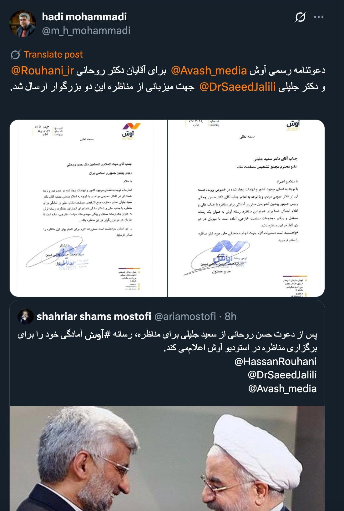 Home/PoliticsYou send out invitations — at the top of the invitation, Saeed Jalili is addressed as “Honorable,” but Hassan Rouhani is not?Read0 -Monday 2025/09/29 - 10:36News Code:22866Share Take less than a minute, register and share your opinion under this post.Insulting or inciting messages will be deleted.Sign UpComming Up Next I remembered Dr. Sadegh Zibakalam's speech about six months ago, when he said: If we enter into a military conflict, whether the system remains or not, not a single electric pole will remain intact in Iran - are you listening?خواندن 0 If this public announcement is not hindered like other parts of the system's security megaproject, yesخواندن 1 minute Regardless of the result of the establishment or non-continuation of the establishment of the Islamic Republic; Should the main leadership option after Ayatollah Khamenei be acted in this way?خواندن 1 minute According to the significant custom of the seminary and jurisprudence, now we have to see which jurist will perform the funeral prayer for Ayatollah Khamenei?خواندن 1 minute In the news of his appointment, I wrote that he is the commander of the camp at the same time as the deputy commander of the army corpsخواندن 1 minuteMost ReadMemories of Akbar Hashemi - February 20, 2000 - Meeting with Abdullah Jasbi and Concerns About Election ResultsMovie / Where is Commander Morteza Talaie?Akbar Hashemi's memoirs - 1999 September 10 - The two-person political negotiations with Vaez Tabasi continued until he was escorted to Tehran, where Hashemi apparently decided to seriously participate in the sixth parliamentary elections.The records of the recent periods of the Islamic Council showed that the parliament is not in charge of affairs and cannot interfere or pass resolutions on the authority of the Commander-in-Chief of the Armed Forces at any level, let alone supervise.What will be the future of Iran with the announced candidates for the presidential election? / Conversation with Dr. Taghi Azad AramakiCan I feel tired with you?A Basiji veterinarian was appointed head of the health network instead of an otolaryngologist.Akbar Hashemi's memoirs - 1999 September 5 - The meeting of the senior managers of the judiciary with Hashemi Rafsanjani and their complaint about the neglect of Hashemi Shahroudi, the new head of the judiciary, continues.Memories of Akbar Hashemi - 1999 September 7 - In continuation of the efforts of the late Vaez Tabasi, who used to encourage Hashemi to participate in the elections in frequent meetings, this time he also met with Hashemi.Akbar Hashemi's memories - 1999 September 9 - Continued visits to the belongings, buildings and works of Astan Quds