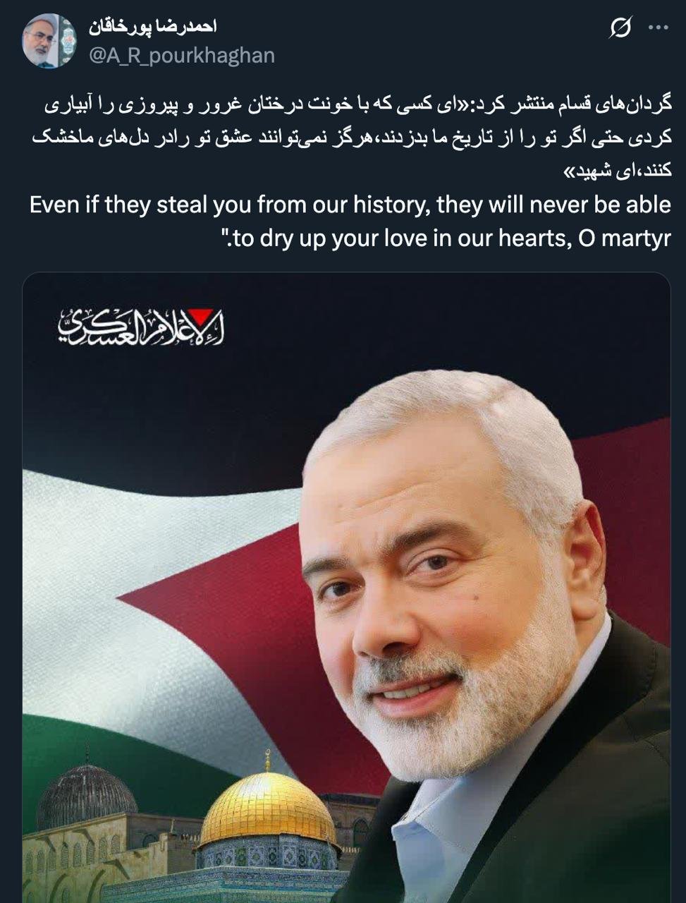 Home/PoliticsTwitter answers August 1 2025Read3 minutes -Saturday 2025/08/02 - 18:52News Code:21837Share The Armed Forces Judicial Organization does not want to inform the outcome of its judicial investigation into the case of his assassination at least in the sectors that can be said? گردانهای قسام منتشر کرد:«ای کسی که با خونت درختان غرور و پیروزی را آبیاری کردی حتی اگر تو را از تاریخ ما بدزدند،هرگز نمیتوانند عشق تو رادر دلهای ماخشک کنند،ای شهید» Even if they steal you from our history, they will never be able to dry up your love in our hearts, O martyr." pic.twitter.com/AFPj90IVj3— احمدرضا پورخاقان (@A_R_pourkhaghan) July 31, 2025🔴 درود @A_R_pourkhaghan سازمان قضایی نیروهای مسلح نمیخواهد نتیجه تحقیقات قضایی خودش را در مورد پرونده ترور او حداقل در بخش هایی که میشود گفت، اطلاع رسانی کند؟ https://t.co/KudvlvRmyd— AbdiMedia - Abdollah Abdi (@abdolah_abdi) August 1, 2025Image First: Be patient to see if Ayatollah; Will Saeed Jalili change his representation in the Supreme National Security Council? And then, if so, will it be a corresponding position, including leadership consultation? درود. تغییر نماینده رهبری در شواری عالی امنیت ملی که بسیار با نفوذ است و تبدیل آن به عنوان مشاور "عادی" چگونه به معنای حمایت جدی تلقی می شود؟— سید ادریس موسوی ۶۵ (@65Syd) July 31, 2025🔴 دروداولا: صبور باشیم ببینیم آیا آیت الله؛ سعید جلیلی را از نمایندگی خود در شورای عالی امنیت ملی تغییر خواهد داد یا خیر؟🔸و بعد #اگر چنین شود سمت متناظر از جمله مشاورت رهبری خواهد داشت یا خیر؟— AbdiMedia - Abdollah Abdi (@abdolah_abdi) August 1, 2025Image Ja'fars have been and will be in all governments and will be in the systemجعفر(ها) واقعاً ول کنید.— حسام الدین آشنا Hosamoddin Ashena (@hesamodin1) July 31, 2025🔴درود#جعفرها در همه دولت ها بودهاند وخواهند بود و ایضا در #نظام هم— AbdiMedia - Abdollah Abdi (@abdolah_abdi) August 1, 2025Image Answer: Does the President's Constitution and the Chairman of this Council be more questionable?آقای #دکتر_پزشکیان در جلسه بعدی شورای عالی فضای مجازی تنها یک پرسش حقوقی مطرح بفرمایید و خلاص: «براساس کدام مستند قانونی آن شورا تصور کرده است که برای #فیلترینگ اپلیکیشنها دارای صلاحیت قانونی است؟»با تصمیمات غیرقانونی، زندگی شهروندان را مختلّ کردهاند.@drpezeshkian— محسن برهانی (@borhanimohsen1) July 31, 2025🔴درودپاسخ: اختیارات تفویضی اصل ۵۷ متمم قانون اساسی🔸رییس جمهور و رییس این شورا دیگر جرات سوال بیشتر دارد؟— AbdiMedia - Abdollah Abdi (@abdolah_abdi) August 1, 2025 Image A member of the Supreme National Security Council can be the chairman of the Defense Council by recognizing the council or the leader.Of course, I do not know exactly of the internal bylaws of the Supreme National Security Council. ایا کاپیتان رئیس شورای دفاع خواهد شد؟— alphabravo (@alphabicarus) August 1, 2025🔴 درودیکی از اعضای شورای عالی امنیت ملی با تشخیص این شورا یا رهبر میتواند رییس شورای دفاع باشد.🔸البته بنده از آیین نامه داخلی شورای عالی امنیت ملی در این ارتباط اطلاع دقیقی ندارم.— AbdiMedia - Abdollah Abdi (@abdolah_abdi) August 1, 2025 Take less than a minute, register and share your opinion under this post.Insulting or inciting messages will be deleted.Sign UpComming Up Next I remembered Dr. Sadegh Zibakalam's speech about six months ago, when he said: If we enter into a military conflict, whether the system remains or not, not a single electric pole will remain intact in Iran - are you listening?خواندن 0 If this public announcement is not hindered like other parts of the system's security megaproject, yesخواندن 1 minute Regardless of the result of the establishment or non-continuation of the establishment of the Islamic Republic; Should the main leadership option after Ayatollah Khamenei be acted in this way?خواندن 1 minute According to the significant custom of the seminary and jurisprudence, now we have to see which jurist will perform the funeral prayer for Ayatollah Khamenei?خواندن 1 minute In the news of his appointment, I wrote that he is the commander of the camp at the same time as the deputy commander of the army corpsخواندن 1 minuteMost ReadMemories of Akbar Hashemi - February 20, 2000 - Meeting with Abdullah Jasbi and Concerns About Election ResultsMovie / Where is Commander Morteza Talaie?Akbar Hashemi's memoirs - 1999 September 10 - The two-person political negotiations with Vaez Tabasi continued until he was escorted to Tehran, where Hashemi apparently decided to seriously participate in the sixth parliamentary elections.The records of the recent periods of the Islamic Council showed that the parliament is not in charge of affairs and cannot interfere or pass resolutions on the authority of the Commander-in-Chief of the Armed Forces at any level, let alone supervise.What will be the future of Iran with the announced candidates for the presidential election? / Conversation with Dr. Taghi Azad AramakiCan I feel tired with you?A Basiji veterinarian was appointed he
