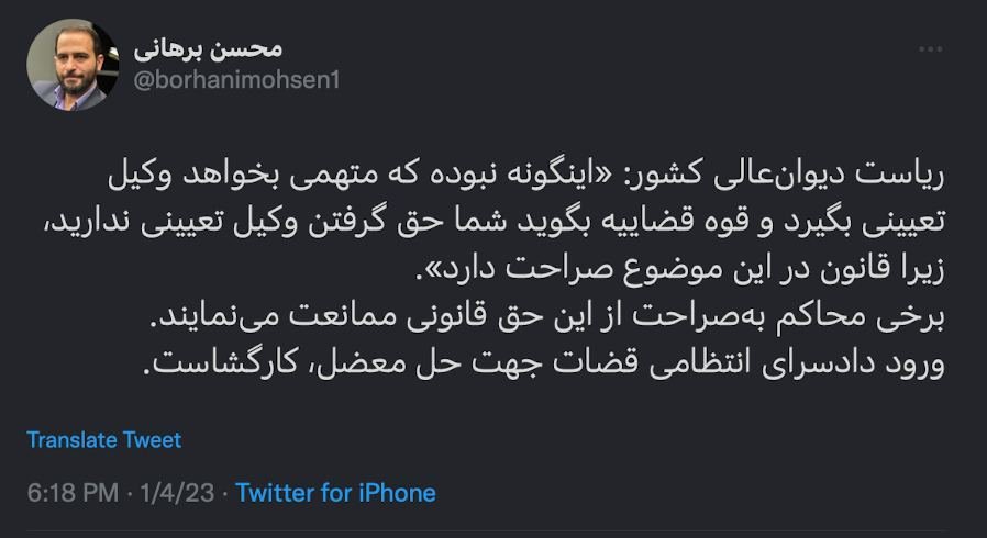 خانه/حقوقیجناب آقای دکتر برهانی با درودخواندن1 دقیقه -دوشنبه 1403/06/26 - 08:49کد خبر2062اشتراکگذاری پیش از این هم در یادداشتهای مختلف درباره این موضوع در عبدی مدیا عرض کردم که کاش وکلای محترم ذی نفع و خانوادههای متهمان بلکه محکومان بهتر است صورت کتبی فارغ از نتیجه ابتدا معاون نظارت و بازرسی دادگستری های کل استان مربوطه و معاون نظارت وبازرسی دیوان عالی کشور را مطلع کنند.و البته متاسفانه رویه نیست که وکلای محترم دادگستری از قضات به دادسرای انتظامی قضات شکایت انتظامی کنند و در این موارد غالباَ موکلین را راهنمایی میکنند تا اقدام کنند. کاش حداقل بصورت کتبی و گزارشی مراتب را به معاون نظارت و ارزشیابی دادستان انتظامی قضات منعکس کنند.حداقل فایده این کار این است که وکلای محترم مربوطه سندی دارند که پیش از رسانهای کردن موضوع مسئولان نظارتی مربوطه را مطلع کردند و آنها توجه نکردند و میتواند مانعی برای ایجاد محدویت احتمالی برای وکیل و صیانت از او شود. کمتر از یک دقیقه زمان بگذارید، ثبتنام کنید و نظرتان را زیر همین پست به اشتراک بگذارید.پیامهای توهینآمیز و یا حاوی دعوت به خشونت حذف خواهند شد.ثبت نامدر ادامه بخوانید جناب گودرزی درود از این منظر هم میشود نگاه کرد با استفاده از نهادهای ارفاقی قضایی آقای وحید اشتری که جنابعالی فعلا وکیل اداری وی هستید، از زندان رها میشود.خواندن 2 دقیقه پاسخ های توییتری 7 اسفندخواندن 1 دقیقه عبدی مدیا هفتم اسفند را به یکایک وکلای دادگستری کانونهای وکلای دادگستری تبریک عرض میکندخواندن 1 دقیقه در دیدار معاون حقوقی و امور مجلس ارتش با رئیس کانون وکلای مرکزخواندن 1 دقیقه دادستان کل کشور چه اختیاری در مورد یک طلبه دارد؟ به دادستان منصوب ویژه روحانیت یا معاونان قضایی او باید رجوع کنیدخواندن 1 دقیقهباید خواندخاطرات اکبر هاشمی - ۱ اسفند ۱۳۷۸ - ملاقات عبدالله جاسبی و نگرانی از نتایج انتخاباتفیلم/ سردار مرتضی طلایی کجاست؟خاطرات اکبر هاشمی - ۱۹ شهريور ۱۳۷۸ - مذاکرات دو نفره سیاسی با واعظ طبسی تا هنگام بدرقه به سوی تهران هم ادامه داشته که در نهایت هاشمی ظاهرا از اینجا تصمیم به شرکت جدی در انتخابات مجلس ششم گرفتسوابق ادوار اخیر مجلس شورای اسلامی نشان داد که مجلس در راس امور نیست و در اختیارات فرمانده کل قوا و نیروهای مسلح در هیچ سطحی نمیتواند دخالت و یا مصوبه طی کند، چه برسد که نظارت کندآینده ایران با نامزدهای اعلام شده انتخابات ریاست جمهوری چه میشود؟ / گفتگو با دکتر تقی آزاد ارمکیمیشه با شما احساس خستگی کرد؟یک دامپزشک بسیجی بجای جراح گوش و حلق و بینی سرپرست شبکه بهداشت ایذه شد!خاطرات اکبر هاشمی - ۱۴ شهريور ۱۳۷۸ - دیدار مدیران ارشد دستگاه قضایی با هاشمی رفسنجانی و گله آنان از بی توجهی هاشمی شاهرودی رییس جدید قوه قضاییه ادامه داردخاطرات اکبر هاشمی - ۱۶ شهريور ۱۳۷۸ - در ادامه تلاش های مرحوم واعظ طبسی که در دیدارهای مکرر برای تشویق هاشمی به شرکت در انتخابات اقدام میکرد این بار هم او با هاشمی ملاقات کردخاطرات اکبر هاشمی - ۱۸ شهريور ۱۳۷۸ - ادامه بازدید ها از متعلقات و ابنیه و آثار آستان قدس