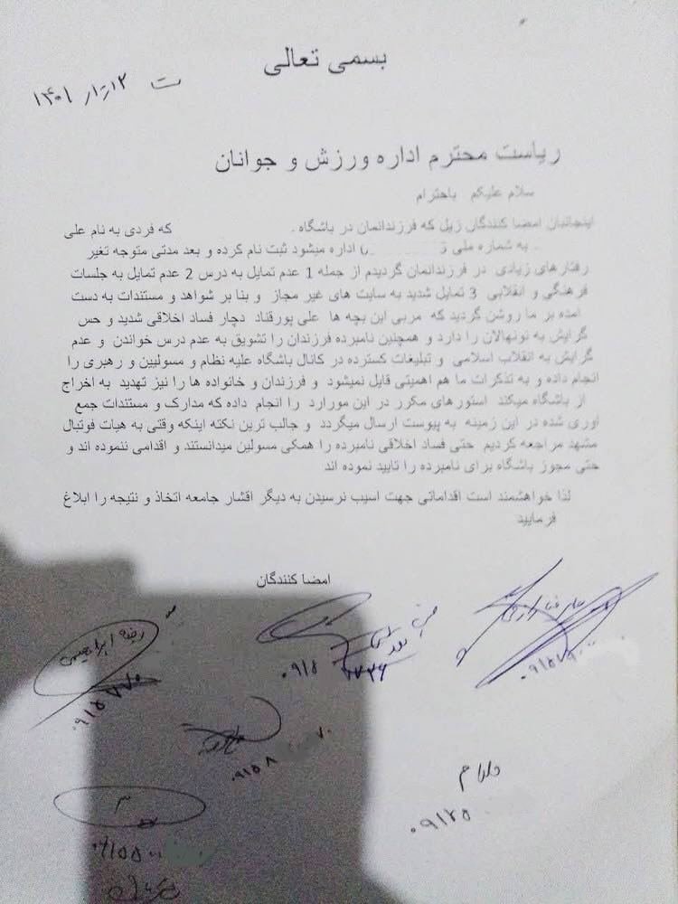 خانه/حقوقیتصویر شکایتنامه والدین فوتبالیستهای نونهال از فساد اخلاقی مربی منحرف!؛خواندن1 دقیقه -دوشنبه 1403/06/26 - 18:38کد خبر2180اشتراکگذاری مربی این بچهها دچار فساد اخلاقی شدید است!نامه شکایت برخی والدین نونهالان مورد تعرض قرار گرفته صحت ادعای آن دسته از افرادی که خود را به بی خبری می زدند، زیر سوال می برد.در تازهترین شکل این ماجرا، نامه شکایتآمیز خانواده این بازیکنان خطاب به اداره ورزش و جوانان به دست ما رسیده که در تاریخ ۱۲ دیماه نوشته شده است؛ یعنی تقریباً ۲ هفته قبل از انتشار رسمی این خبر، والدین در این نامه تأکید کردهاند با مراجعه به هیأت فوتبال، برخی مسئولین این هیات از ماجرای فساد اخلاقی باخبر بوده، اما اقدامی نکردهاند! [نقل به متن نامه]/ طرفداری کمتر از یک دقیقه زمان بگذارید، ثبتنام کنید و نظرتان را زیر همین پست به اشتراک بگذارید.پیامهای توهینآمیز و یا حاوی دعوت به خشونت حذف خواهند شد.ثبت نامدر ادامه بخوانید استاد در صدر این مطالبه گران شخص رییس قوه قضاییه است که علنی چنین مطالبهای دارد و در رسانه ها هم مکرر گفته استخواندن 1 دقیقه خیلی مهم / قابل توجه: وکلای دادگستری در سراسر کشور سردفتران و دفتریاران سراسر کشورخواندن 2 دقیقه درکانون وکلای دادگستری خوزستان چه خبر است؟ / استعفای تعدادی از وکلای عضو هیئت مدیره این کانونخواندن 1 دقیقه مادام که تبصره ذیل ماده ۴۸ قانون آیین دادرسی کیفری حذف یا اصلاح نشده...خواندن 1 دقیقه سخت نیست و بین زندانیان بسیار مرسوم استخواندن 1 دقیقهباید خواندخاطرات اکبر هاشمی - ۱ اسفند ۱۳۷۸ - ملاقات عبدالله جاسبی و نگرانی از نتایج انتخاباتفیلم/ سردار مرتضی طلایی کجاست؟خاطرات اکبر هاشمی - ۱۹ شهريور ۱۳۷۸ - مذاکرات دو نفره سیاسی با واعظ طبسی تا هنگام بدرقه به سوی تهران هم ادامه داشته که در نهایت هاشمی ظاهرا از اینجا تصمیم به شرکت جدی در انتخابات مجلس ششم گرفتسوابق ادوار اخیر مجلس شورای اسلامی نشان داد که مجلس در راس امور نیست و در اختیارات فرمانده کل قوا و نیروهای مسلح در هیچ سطحی نمیتواند دخالت و یا مصوبه طی کند، چه برسد که نظارت کندآینده ایران با نامزدهای اعلام شده انتخابات ریاست جمهوری چه میشود؟ / گفتگو با دکتر تقی آزاد ارمکیمیشه با شما احساس خستگی کرد؟یک دامپزشک بسیجی بجای جراح گوش و حلق و بینی سرپرست شبکه بهداشت ایذه شد!خاطرات اکبر هاشمی - ۱۴ شهريور ۱۳۷۸ - دیدار مدیران ارشد دستگاه قضایی با هاشمی رفسنجانی و گله آنان از بی توجهی هاشمی شاهرودی رییس جدید قوه قضاییه ادامه داردخاطرات اکبر هاشمی - ۱۶ شهريور ۱۳۷۸ - در ادامه تلاش های مرحوم واعظ طبسی که در دیدارهای مکرر برای تشویق هاشمی به شرکت در انتخابات اقدام میکرد این بار هم او با هاشمی ملاقات کردخاطرات اکبر هاشمی - ۱۸ شهريور ۱۳۷۸ - ادامه بازدید ها از متعلقات و ابنیه و آثار آستان قدس