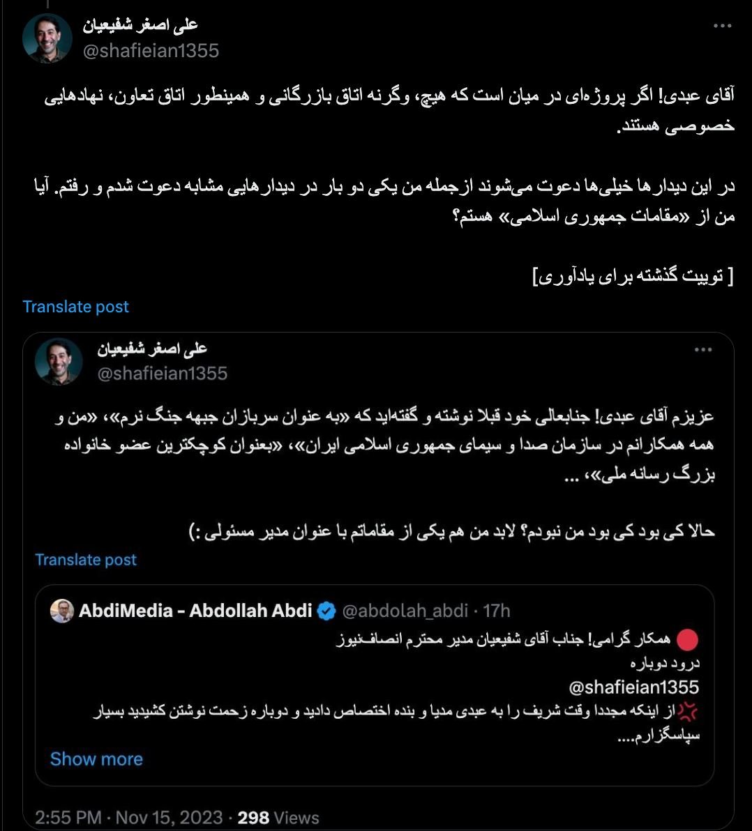 خانه/سیاستجناب آقای شفیعیان درودخواندن1 دقیقه -سه شنبه 1403/07/10 - 18:13کد خبر5213اشتراکگذاری در ماه رمضان برای شما صبوری، تدبر بیشتر و دوری از قضاوت ناصواب آرزو دارم. گویا دوستان به جنابعالی میگویند برای امور بدیهی و اظهر من الشمس هم بحث کنید.هر طور دوست دارید فکر کنید؛ موفق باشید کمتر از یک دقیقه زمان بگذارید، ثبتنام کنید و نظرتان را زیر همین پست به اشتراک بگذارید.پیامهای توهینآمیز و یا حاوی دعوت به خشونت حذف خواهند شد.ثبت نامدر ادامه بخوانید سید مجتبی خامنهای رهبر منتقم هست و نه مصلحخواندن 1 دقیقه اندکی پیش از اعلام نام رهبر سوم جمهوری اسلامی در گفتگویی تحلیلی به سناریوهای آینده با ساختار فعلی جمهوری اسلامی پرداختمخواندن 0 بالاخره اکثریت این دوره مجلس خبرگان رهبری با مشورت و رایزنی بیشتر، صلاح را در این دانست که برای گزینه رهبر سوم به سراغ آیتالله سید مجتبی خامنهای برود و نام او را نهایی و اعلام کند.خواندن 1 دقیقه سیدمجتبی خامنهای با رأی مجلس خبرگان سومین رهبر انقلاب اسلامی ایران شدخواندن 2 دقیقه آقای علی حسین قاضی زاده از تبلیغ عبدی مدیا متشکرم حتی اگر دریچه اطلاع رسانی یک ایرانی که موج سواری نمی کند و از خون جوانان وطن و شهروندان ایران بزرگ و متحد برای خود کلاه و منفعتی عاید نمی کند.خواندن 1 دقیقهباید خواندخاطرات اکبر هاشمی - ۱ اسفند ۱۳۷۸ - ملاقات عبدالله جاسبی و نگرانی از نتایج انتخاباتفیلم/ سردار مرتضی طلایی کجاست؟خاطرات اکبر هاشمی - ۱۹ شهريور ۱۳۷۸ - مذاکرات دو نفره سیاسی با واعظ طبسی تا هنگام بدرقه به سوی تهران هم ادامه داشته که در نهایت هاشمی ظاهرا از اینجا تصمیم به شرکت جدی در انتخابات مجلس ششم گرفتسوابق ادوار اخیر مجلس شورای اسلامی نشان داد که مجلس در راس امور نیست و در اختیارات فرمانده کل قوا و نیروهای مسلح در هیچ سطحی نمیتواند دخالت و یا مصوبه طی کند، چه برسد که نظارت کندآینده ایران با نامزدهای اعلام شده انتخابات ریاست جمهوری چه میشود؟ / گفتگو با دکتر تقی آزاد ارمکیمیشه با شما احساس خستگی کرد؟یک دامپزشک بسیجی بجای جراح گوش و حلق و بینی سرپرست شبکه بهداشت ایذه شد!خاطرات اکبر هاشمی - ۱۴ شهريور ۱۳۷۸ - دیدار مدیران ارشد دستگاه قضایی با هاشمی رفسنجانی و گله آنان از بی توجهی هاشمی شاهرودی رییس جدید قوه قضاییه ادامه داردخاطرات اکبر هاشمی - ۱۶ شهريور ۱۳۷۸ - در ادامه تلاش های مرحوم واعظ طبسی که در دیدارهای مکرر برای تشویق هاشمی به شرکت در انتخابات اقدام میکرد این بار هم او با هاشمی ملاقات کردخاطرات اکبر هاشمی - ۱۸ شهريور ۱۳۷۸ - ادامه بازدید ها از متعلقات و ابنیه و آثار آستان قدس