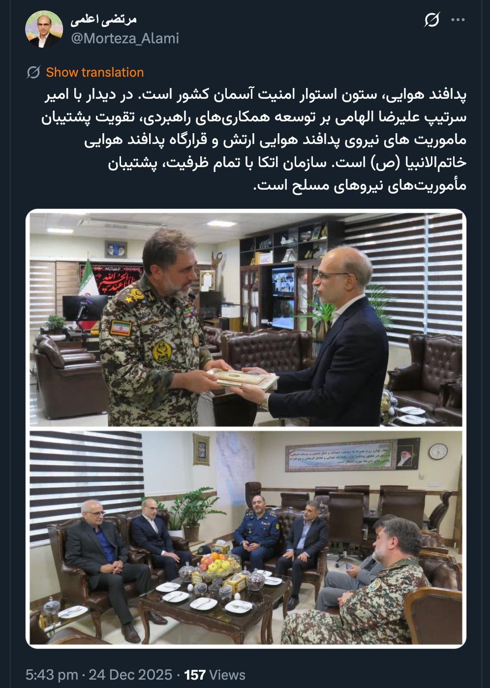 خانه/سیاستجناب آقای مدیر عامل اتکا درودخواندن1 دقیقه -جمعه 1404/10/05 - 18:07کد خبر24036اشتراکگذاری پیش از این درمورد نشان دادن دفتر کار معاون اول رییس جمهور در عکس های علنی و فساد مترتب بر آن نوشته بودم.اکنون هم نشان دادن دفتر کار فرمانده نیرو آن هم با همه ابزار و لوازم کار ویواقعا نمیدانم مسوولان حداقل نظامی و انتظامی چرا نباید اتاق ملاقات هایشان با دفتر کار مجزا باشد؟🔴 جناب آقای مدیر عامل اتکا؛ درود💢پیش از این درمورد نشان دادن دفتر کار معاون اول رییس جمهور در عکس های علنی و فساد مترتب بر آن نوشته بودم. اکنون هم نشان دادن دفتر کار فرمانده نیرو آن هم با همه ابزار و لوازم کار وی🔸واقعا نمیدانم…— AbdiMedia - Abdollah Abdi (@abdolah_abdi) December 24, 2025 کمتر از یک دقیقه زمان بگذارید، ثبتنام کنید و نظرتان را زیر همین پست به اشتراک بگذارید.پیامهای توهینآمیز و یا حاوی دعوت به خشونت حذف خواهند شد.ثبت نامدر ادامه بخوانید تایید یادداشت های عبدی مدیا مبنی بر مذاکرات پنهان ایالات متحده و جمهوری اسلامی توسط سازمان اطلاعات خارجی و نهضتهای وزارت اطلاعاتخواندن 1 دقیقه روزی روایت دقیق بازداشت گروه جامعه و نقشه هایی که داشتند که با ملاقات مادر شهیدان جلایی پور با آیتالله خامنهای نافرجام ماند و آخرین نفر بازداشتی ها ماشالله شمس الواعظین بود که آزاد شد، گفته خواهد شد؟خواندن 1 دقیقه آقای سفیر جمهوری اسلامی درود تحقق این جدیت زمان هم دارد؟خواندن 1 دقیقه آقای بابک زنجانی درود دستگاه های اطلاعاتی جمهوری اسلامی در پوشش و ابزار سازمان تنظیم مقررات و ارتباطات رادیویی اجازه چنین شبکهای بدون نظارت دقیق را خواهند داد؟خواندن 1 دقیقه دوم شهریور ۱۳۸۲ محمد صدر عضو فعلی مجمع تشخیص مصلحت نظام و معاون وقت وزارت امور خارجه گزارشی با قید آنی برای رییس دفتر رهبر جمهوری اسلامی می نویسدخواندن 1 دقیقهباید خواندخاطرات اکبر هاشمی - ۱ اسفند ۱۳۷۸ - ملاقات عبدالله جاسبی و نگرانی از نتایج انتخاباتفیلم/ سردار مرتضی طلایی کجاست؟خاطرات اکبر هاشمی - ۱۹ شهريور ۱۳۷۸ - مذاکرات دو نفره سیاسی با واعظ طبسی تا هنگام بدرقه به سوی تهران هم ادامه داشته که در نهایت هاشمی ظاهرا از اینجا تصمیم به شرکت جدی در انتخابات مجلس ششم گرفتسوابق ادوار اخیر مجلس شورای اسلامی نشان داد که مجلس در راس امور نیست و در اختیارات فرمانده کل قوا و نیروهای مسلح در هیچ سطحی نمیتواند دخالت و یا مصوبه طی کند، چه برسد که نظارت کندآینده ایران با نامزدهای اعلام شده انتخابات ریاست جمهوری چه میشود؟ / گفتگو با دکتر تقی آزاد ارمکیمیشه با شما احساس خستگی کرد؟یک دامپزشک بسیجی بجای جراح گوش و حلق و بینی سرپرست شبکه بهداشت ایذه شد!خاطرات اکبر هاشمی - ۱۴ شهريور ۱۳۷۸ - دیدار مدیران ارشد دستگاه قضایی با هاشمی رفسنجانی و گله آنان از بی توجهی هاشمی شاهرودی رییس جدید قوه قضاییه ادامه داردخاطرات اکبر هاشمی - ۱۶ شهريور ۱۳۷۸ - در ادامه تلاش های مرحوم واعظ طبسی که در دیدارهای مکرر برای تشویق هاشمی به شرکت در انتخابات اقدام میکرد این بار هم او با هاشمی ملاقات کردخاطرات اکبر هاشمی - ۱۸ شهريور ۱۳۷۸ - ادامه بازدید ها از متعلقات و ابنیه و آثار آستان قدس