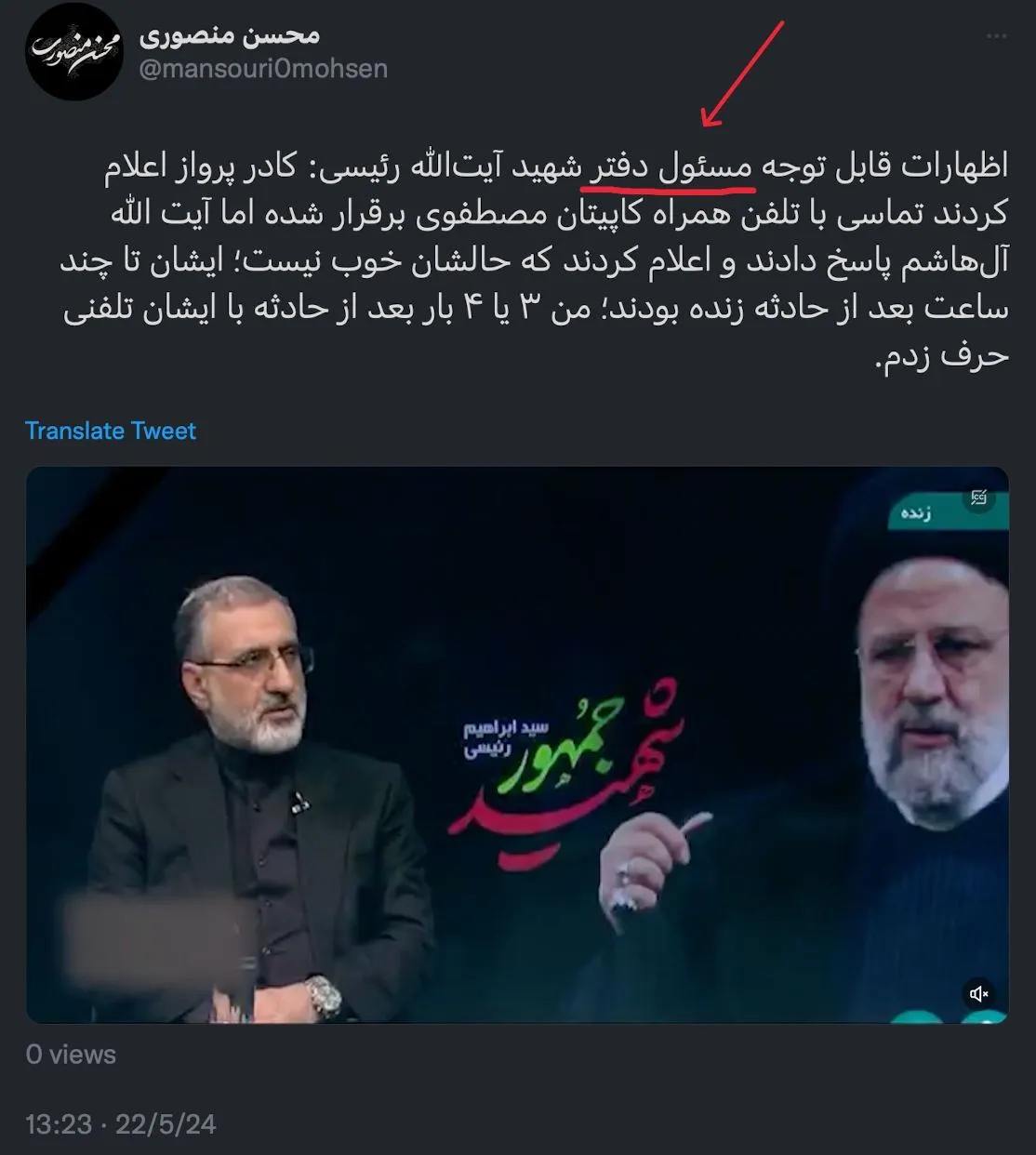 خانه/سیاستجناب آقای منصوری معاون رییس جمهور و سرپرست نهاد ریاست جمهوری درودخواندن1 دقیقه -چهارشنبه 1403/07/11 - 14:47کد خبر5359اشتراکگذاری چرا در توییتتان سمت حقوقی «رییس دفتر رییس جمهور» را در حد «مسوول دفتر آیتالله رییسی» تقلیل دادید؟یعنی حتی از مدیر حوزه دفتر رییس جمهور هم از لحاظ اداری پایین تر است؟سهوی است؟ کمتر از یک دقیقه زمان بگذارید، ثبتنام کنید و نظرتان را زیر همین پست به اشتراک بگذارید.پیامهای توهینآمیز و یا حاوی دعوت به خشونت حذف خواهند شد.ثبت نامدر ادامه بخوانید سربسته نوشته بودم و آذری جهرمی اندکی سر باز سخن گفتخواندن 1 دقیقه ببینید: اسپینوزای ایران؟ | آینده اسلام در جمهوری اسلامی با حضور حاج شیخ عبدالرحیم سلیمانی اردستانیخواندن 1 دقیقه بهروز خان درود برای من خبرنگار ساده سوالی پیش آمده فعالانی در فضای مجازی توییت میزنند و بارها سوال کردند چرا سعید جلیلی در لیست تحریم ها نیست؟خواندن 1 دقیقه پیش از این در مورد این جوان و نسبت های او در عبدی مدیا نوشتهامخواندن 1 دقیقه جناب صحفی درود امیدوارم دادستان منصوب و دادستان ویژه روحانیت تهران همانطور که نسبت به پرونده اتهامی گروه مالی زاویه آن را با صدور قرار واگذاری به دادسرای امور بین الملل تهران ارسال و اعاده کرد...خواندن 1 دقیقهباید خواندخاطرات اکبر هاشمی - ۱ اسفند ۱۳۷۸ - ملاقات عبدالله جاسبی و نگرانی از نتایج انتخاباتفیلم/ سردار مرتضی طلایی کجاست؟خاطرات اکبر هاشمی - ۱۹ شهريور ۱۳۷۸ - مذاکرات دو نفره سیاسی با واعظ طبسی تا هنگام بدرقه به سوی تهران هم ادامه داشته که در نهایت هاشمی ظاهرا از اینجا تصمیم به شرکت جدی در انتخابات مجلس ششم گرفتسوابق ادوار اخیر مجلس شورای اسلامی نشان داد که مجلس در راس امور نیست و در اختیارات فرمانده کل قوا و نیروهای مسلح در هیچ سطحی نمیتواند دخالت و یا مصوبه طی کند، چه برسد که نظارت کندآینده ایران با نامزدهای اعلام شده انتخابات ریاست جمهوری چه میشود؟ / گفتگو با دکتر تقی آزاد ارمکیمیشه با شما احساس خستگی کرد؟یک دامپزشک بسیجی بجای جراح گوش و حلق و بینی سرپرست شبکه بهداشت ایذه شد!خاطرات اکبر هاشمی - ۱۴ شهريور ۱۳۷۸ - دیدار مدیران ارشد دستگاه قضایی با هاشمی رفسنجانی و گله آنان از بی توجهی هاشمی شاهرودی رییس جدید قوه قضاییه ادامه داردخاطرات اکبر هاشمی - ۱۶ شهريور ۱۳۷۸ - در ادامه تلاش های مرحوم واعظ طبسی که در دیدارهای مکرر برای تشویق هاشمی به شرکت در انتخابات اقدام میکرد این بار هم او با هاشمی ملاقات کردخاطرات اکبر هاشمی - ۱۸ شهريور ۱۳۷۸ - ادامه بازدید ها از متعلقات و ابنیه و آثار آستان قدس