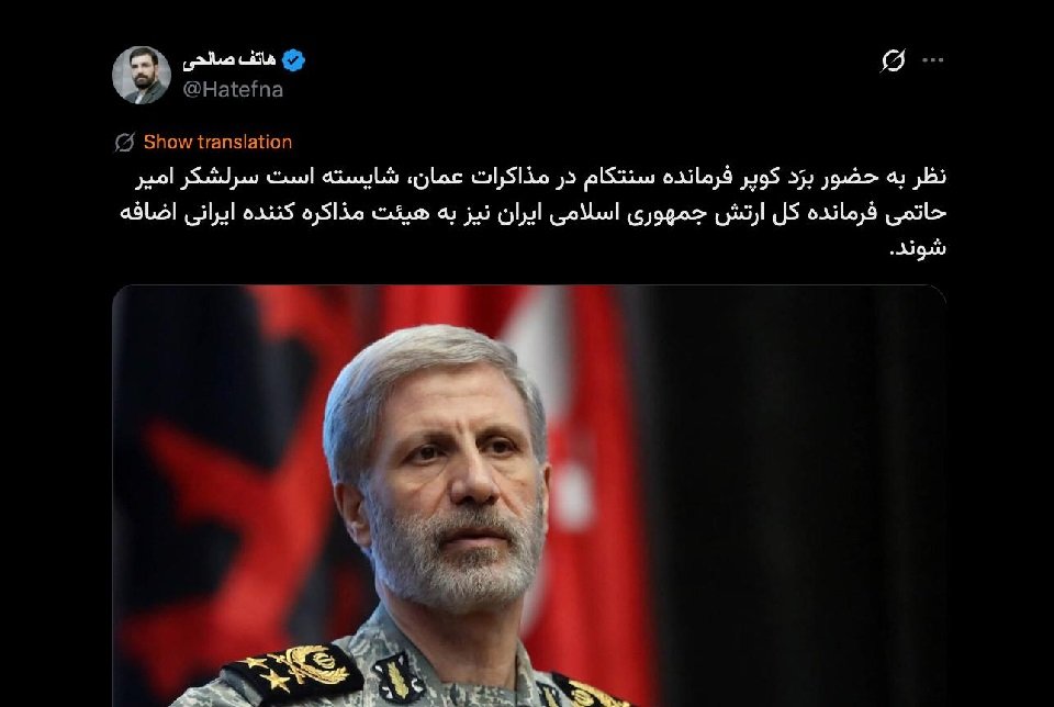 خانه/سیاستالبته اگر و اگر آیتالله خامنهای اجازه میداد (که بسیار بعید بود) سرلشکر پاسدار عبداللهی فرمانده قرارگاه مرکزی خاتم الانبیاء باید شرکت میکرد نه فرمانده کل ارتشخواندن1 دقیقه -جمعه 1404/11/17 - 23:30کد خبر24335اشتراکگذاری نظر به حضور برَد کوپر فرمانده سنتکام در مذاکرات عمان، شایسته است سرلشکر امیر حاتمی فرمانده کل ارتش جمهوری اسلامی ایران نیز به هیئت مذاکره کننده ایرانی اضافه شوند. pic.twitter.com/Qob2KyuMge— هاتف صالحی (@Hatefna) February 6, 2026🔴 درودالبته اگر و اگر آیتالله خامنهای اجازه میداد (که بسیار بعید بود) سرلشکر #پاسدار عبداللهی فرمانده قرارگاه مرکزی خاتم الانبیاء باید شرکت میکرد نه فرمانده کل ارتش— AbdiMedia - Abdollah Abdi (@abdolah_abdi) February 6, 2026در این صورت جانشین سردار عبداللهی که ارتشی است می باید شرکت میکرد از باب رعایت سمت متناظر عرض کردمسلام آقا. سپاه رو بنا به مصلحت گفتیم معاف کنند 😊— هاتف صالحی (@Hatefna) February 6, 2026🔴 در این صورت جانشین سردار عبداللهی که ارتشی است می باید شرکت میکرد🔸از باب رعایت سمت متناظر عرض کردم— AbdiMedia - Abdollah Abdi (@abdolah_abdi) February 6, 2026 کمتر از یک دقیقه زمان بگذارید، ثبتنام کنید و نظرتان را زیر همین پست به اشتراک بگذارید.پیامهای توهینآمیز و یا حاوی دعوت به خشونت حذف خواهند شد.ثبت نامدر ادامه بخوانید جناب آشنا درود شما هم در حال بررسی این نظریه هستید که ممکن است اساساً این لشکرکشی آمریکا نهایتاً هدفی غیر از جمهوری اسلامی باشد؟خواندن 1 دقیقه موضوع کاملا روشن است با اشاره به قوه قضاییه آزاد شدند و این اشاره چنان پیگیری سریعی داشت که برای متهمین حتی روز تعطیل قرار قبولی وثیقه صادر و آزاد شدند.خواندن 1 دقیقه آقای دکتر درود نتیجه اعلام نظر پزشکی قانونی که خانواده ایشان از دادسرا دنبال کردند چه شد؟خواندن 1 دقیقه پاسخ های توییتری 30 بهمنخواندن 4 دقیقه در داخل کشور واقعا چه خبر است؟خواندن 1 دقیقهباید خواندخاطرات اکبر هاشمی - ۱ اسفند ۱۳۷۸ - ملاقات عبدالله جاسبی و نگرانی از نتایج انتخاباتفیلم/ سردار مرتضی طلایی کجاست؟خاطرات اکبر هاشمی - ۱۹ شهريور ۱۳۷۸ - مذاکرات دو نفره سیاسی با واعظ طبسی تا هنگام بدرقه به سوی تهران هم ادامه داشته که در نهایت هاشمی ظاهرا از اینجا تصمیم به شرکت جدی در انتخابات مجلس ششم گرفتسوابق ادوار اخیر مجلس شورای اسلامی نشان داد که مجلس در راس امور نیست و در اختیارات فرمانده کل قوا و نیروهای مسلح در هیچ سطحی نمیتواند دخالت و یا مصوبه طی کند، چه برسد که نظارت کندآینده ایران با نامزدهای اعلام شده انتخابات ریاست جمهوری چه میشود؟ / گفتگو با دکتر تقی آزاد ارمکیمیشه با شما احساس خستگی کرد؟یک دامپزشک بسیجی بجای جراح گوش و حلق و بینی سرپرست شبکه بهداشت ایذه شد!خاطرات اکبر هاشمی - ۱۴ شهريور ۱۳۷۸ - دیدار مدیران ارشد دستگاه قضایی با هاشمی رفسنجانی و گله آنان از بی توجهی هاشمی شاهرودی رییس جدید قوه قضاییه ادامه داردخاطرات اکبر هاشمی - ۱۶ شهريور ۱۳۷۸ - در ادامه تلاش های مرحوم واعظ طبسی که در دیدارهای مکرر برای تشویق هاشمی به شرکت در انتخابات اقدام میکرد این بار هم او با هاشمی ملاقات کردخاطرات اکبر هاشمی - ۱۸ شهريور ۱۳۷۸ - ادامه بازدید ها از متعلقات و ابنیه و آثار آستان قدس