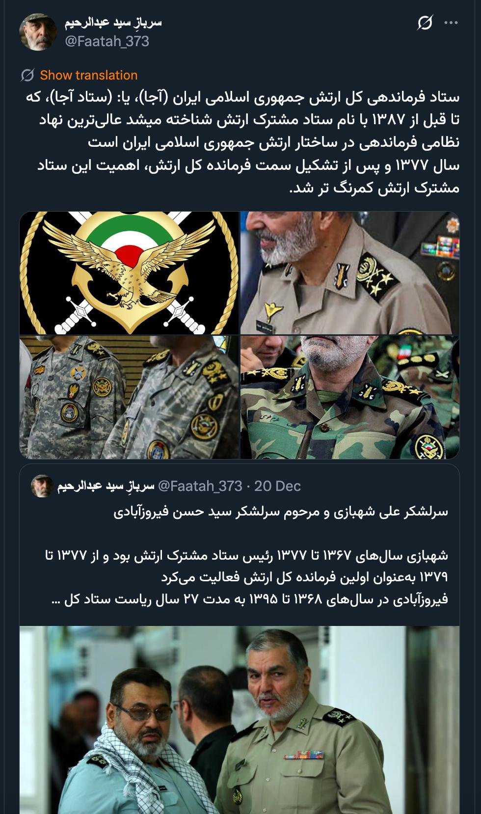 خانه/سیاست/امنیتیستاد مشترک ارتش و ستاد مشترک سپاه هر دو به ستاد فرماندهی کل تغییر ساختار دادند والبته معاون هماهنگ کننده، رییس ستاد هم هستخواندن1 دقیقه -پنجشنبه 1404/10/04 - 01:57کد خبر24017اشتراکگذاری آیتالله خامنهای هم با استفاده از اختیارات فرماندهی کل قوا که منویات او این بوده فرامین فرمانده کل قوا مقدم بر قانون است فرماندهی کل ارتش را ایجاد کرد.همانطور که برای ارتقای نیروی انتظامی به سازمان انتظامی و نصب فرمانده کل لزومی به اصلاح قانون مجلس را ندید.🔴 ستاد مشترک ارتش و ستاد مشترک سپاه هر دو به ستاد فرماندهی کل تغییر ساختار دادند والبته معاون هماهنگ کننده، رییس ستاد هم هست💢آیتالله خامنهای هم با استفاده از اختیارات #فرماندهی کل قوا که منویات او این بوده #فرامین_فرمانده_کل_قوا مقدم_بر_قانون_است فرماندهی کل ارتش را ایجاد کرد.📌 همانطور که برای ارتقای #نیروی_انتظامی به #سازمان_انتظامی و نصب #فرمانده_کل لزومی به اصلاح قانون مجلس را ندید— AbdiMedia - Abdollah Abdi (@abdolah_abdi) December 22, 2025 کمتر از یک دقیقه زمان بگذارید، ثبتنام کنید و نظرتان را زیر همین پست به اشتراک بگذارید.پیامهای توهینآمیز و یا حاوی دعوت به خشونت حذف خواهند شد.ثبت نامدر ادامه بخوانید تازهترین رأی شعبه ۲۲ دادگاه انقلاب، ۱۴ ماه حبس تعزیری دیگر به پرونده سید مصطفی تاجزاده افزوده شدخواندن 1 دقیقه واقعا آزاده مختاری کجاستخواندن 1 دقیقه متهمی از حوادث تلخ ۱۸ و ۱۹ دی ماه و بعد میشناسید که بازداشت شده و تاکنون در هر دادگاهی محکوم به اعدام شده باشد؟خواندن 1 دقیقه پشت شوفاژ سلول ها در بند ۲۰۹، به راهروی دیگری متصل هست که سلول های دیگر هستند و عملا اگر درهای سلول ها بسته باشد به شوفاژ نمیشود زد.خواندن 2 دقیقه ۳ مدعی نفوذ در دستگاه قضایی مازندران بازداشت شدندخواندن 1 دقیقهباید خواندخاطرات اکبر هاشمی - ۱ اسفند ۱۳۷۸ - ملاقات عبدالله جاسبی و نگرانی از نتایج انتخاباتفیلم/ سردار مرتضی طلایی کجاست؟خاطرات اکبر هاشمی - ۱۹ شهريور ۱۳۷۸ - مذاکرات دو نفره سیاسی با واعظ طبسی تا هنگام بدرقه به سوی تهران هم ادامه داشته که در نهایت هاشمی ظاهرا از اینجا تصمیم به شرکت جدی در انتخابات مجلس ششم گرفتسوابق ادوار اخیر مجلس شورای اسلامی نشان داد که مجلس در راس امور نیست و در اختیارات فرمانده کل قوا و نیروهای مسلح در هیچ سطحی نمیتواند دخالت و یا مصوبه طی کند، چه برسد که نظارت کندآینده ایران با نامزدهای اعلام شده انتخابات ریاست جمهوری چه میشود؟ / گفتگو با دکتر تقی آزاد ارمکیمیشه با شما احساس خستگی کرد؟یک دامپزشک بسیجی بجای جراح گوش و حلق و بینی سرپرست شبکه بهداشت ایذه شد!خاطرات اکبر هاشمی - ۱۴ شهريور ۱۳۷۸ - دیدار مدیران ارشد دستگاه قضایی با هاشمی رفسنجانی و گله آنان از بی توجهی هاشمی شاهرودی رییس جدید قوه قضاییه ادامه داردخاطرات اکبر هاشمی - ۱۶ شهريور ۱۳۷۸ - در ادامه تلاش های مرحوم واعظ طبسی که در دیدارهای مکرر برای تشویق هاشمی به شرکت در انتخابات اقدام میکرد این بار هم او با هاشمی ملاقات کردخاطرات اکبر هاشمی - ۱۸ شهريور ۱۳۷۸ - ادامه بازدید ها از متعلقات و ابنیه و آثار آستان قدس