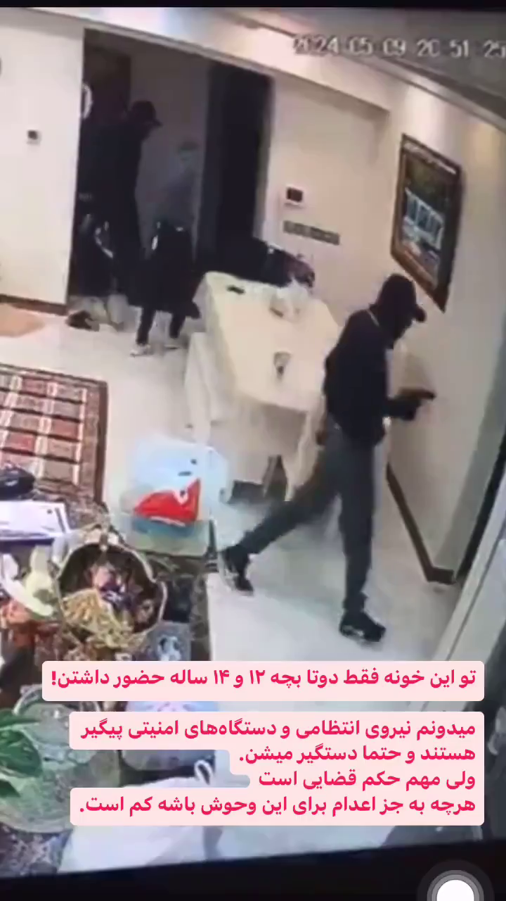 خانه/سیاست/امنیتیآقای رییس سازمان اطلاعات تهران، آقای جانشین قرارگاه ثارالله درودخواندن1 دقیقه -چهارشنبه 1403/07/11 - 08:40کد خبر5244اشتراکگذاریVideo file Video file Video file PreviousNextتصاویری از سرقت و حمله مسلحانه با کلاش در محله سردار جنگل تهران به آپارتمانهای مسکونی را ملاحظه کنید. تاثر و شوک عمیق از این جنایت بر بزهدیدگان، بخصوص کودکان و نوجوانان و بانوان را به هیچ نوع نمیشود جبران کرد.انتظار است به لحاظ اهمیت این اقدام و ناامنی حاصل از آن، وزارت اطلاعات و قرارگاه ثارالله با استفاده از تجهیزات فنی و رصد گسترده در این میان به کمک فراجا برود و متهمین در اسرع وقت به دادسرای عمومی و انقلاب تهران تحویل و با آنان برخوردی عبرت آموز شود.متوجه ابعاد منفی اجتماعی این جنایت های ادواری برای شهروندان هستید؟ کمتر از یک دقیقه زمان بگذارید، ثبتنام کنید و نظرتان را زیر همین پست به اشتراک بگذارید.پیامهای توهینآمیز و یا حاوی دعوت به خشونت حذف خواهند شد.ثبت نامدر ادامه بخوانید با رایزنی یک مقام ارشد و خاص، افسون علیمرادیان فعال مدنی با صدور قرار قبولی وثیقه توسط بازپرس تا رسیدگی به سایر مراحل اتهامات وی از زندان آزاد شدخواندن 1 دقیقه تازهترین رأی شعبه ۲۲ دادگاه انقلاب، ۱۴ ماه حبس تعزیری دیگر به پرونده سید مصطفی تاجزاده افزوده شدخواندن 1 دقیقه واقعا آزاده مختاری کجاستخواندن 1 دقیقه متهمی از حوادث تلخ ۱۸ و ۱۹ دی ماه و بعد میشناسید که بازداشت شده و تاکنون در هر دادگاهی محکوم به اعدام شده باشد؟خواندن 1 دقیقه پشت شوفاژ سلول ها در بند ۲۰۹، به راهروی دیگری متصل هست که سلول های دیگر هستند و عملا اگر درهای سلول ها بسته باشد به شوفاژ نمیشود زد.خواندن 2 دقیقهباید خواندخاطرات اکبر هاشمی - ۱ اسفند ۱۳۷۸ - ملاقات عبدالله جاسبی و نگرانی از نتایج انتخاباتفیلم/ سردار مرتضی طلایی کجاست؟خاطرات اکبر هاشمی - ۱۹ شهريور ۱۳۷۸ - مذاکرات دو نفره سیاسی با واعظ طبسی تا هنگام بدرقه به سوی تهران هم ادامه داشته که در نهایت هاشمی ظاهرا از اینجا تصمیم به شرکت جدی در انتخابات مجلس ششم گرفتسوابق ادوار اخیر مجلس شورای اسلامی نشان داد که مجلس در راس امور نیست و در اختیارات فرمانده کل قوا و نیروهای مسلح در هیچ سطحی نمیتواند دخالت و یا مصوبه طی کند، چه برسد که نظارت کندآینده ایران با نامزدهای اعلام شده انتخابات ریاست جمهوری چه میشود؟ / گفتگو با دکتر تقی آزاد ارمکیمیشه با شما احساس خستگی کرد؟یک دامپزشک بسیجی بجای جراح گوش و حلق و بینی سرپرست شبکه بهداشت ایذه شد!خاطرات اکبر هاشمی - ۱۴ شهريور ۱۳۷۸ - دیدار مدیران ارشد دستگاه قضایی با هاشمی رفسنجانی و گله آنان از بی توجهی هاشمی شاهرودی رییس جدید قوه قضاییه ادامه داردخاطرات اکبر هاشمی - ۱۶ شهريور ۱۳۷۸ - در ادامه تلاش های مرحوم واعظ طبسی که در دیدارهای مکرر برای تشویق هاشمی به شرکت در انتخابات اقدام میکرد این بار هم او با هاشمی ملاقات کردخاطرات اکبر هاشمی - ۱۸ شهريور ۱۳۷۸ - ادامه بازدید ها از متعلقات و ابنیه و آثار آستان قدس