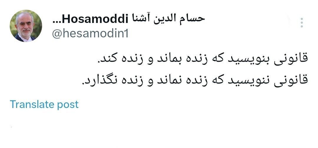 خانه/اجتماعیآشنا: قانونی بنویسید که زنده بماند و زنده کند.خواندن1 دقیقه -چهارشنبه 1403/09/14 - 12:34کد خبر9304اشتراکگذاری قانونی ننویسید که زنده نماند و زنده نگذارد. کمتر از یک دقیقه زمان بگذارید، ثبتنام کنید و نظرتان را زیر همین پست به اشتراک بگذارید.پیامهای توهینآمیز و یا حاوی دعوت به خشونت حذف خواهند شد.ثبت نامدر ادامه بخوانید اخباری از سرقت منازل و مغازه ها و در مواردی سرقت گوشی موبایل شهروندان به عبدی مدیا واصل شده و در مواردی تسویه حساب های شخصیخواندن 1 دقیقه واقعیت، تلختر و دهشتناکتر از این پست هاست که اشاره کردهایدخواندن 1 دقیقه با جعل هویت در شبکه ایکس برای ایرانیان چه باید کرد؟خواندن 1 دقیقه سال نوی میلادی را در حالی آغاز میکنیم که ایرانِ جانمان، سالی سنگین و پرحادثه را پشت سر گذاشته استخواندن 1 دقیقه عدم پذیرش بیماران بیمه سلامت با تعرفه دولتی (به جز موارد اورژانسی، بیماران خاص، صعب العلاج و سوختگی)خواندن 1 دقیقهباید خواندخاطرات اکبر هاشمی - ۱ اسفند ۱۳۷۸ - ملاقات عبدالله جاسبی و نگرانی از نتایج انتخاباتفیلم/ سردار مرتضی طلایی کجاست؟خاطرات اکبر هاشمی - ۱۹ شهريور ۱۳۷۸ - مذاکرات دو نفره سیاسی با واعظ طبسی تا هنگام بدرقه به سوی تهران هم ادامه داشته که در نهایت هاشمی ظاهرا از اینجا تصمیم به شرکت جدی در انتخابات مجلس ششم گرفتسوابق ادوار اخیر مجلس شورای اسلامی نشان داد که مجلس در راس امور نیست و در اختیارات فرمانده کل قوا و نیروهای مسلح در هیچ سطحی نمیتواند دخالت و یا مصوبه طی کند، چه برسد که نظارت کندآینده ایران با نامزدهای اعلام شده انتخابات ریاست جمهوری چه میشود؟ / گفتگو با دکتر تقی آزاد ارمکیمیشه با شما احساس خستگی کرد؟یک دامپزشک بسیجی بجای جراح گوش و حلق و بینی سرپرست شبکه بهداشت ایذه شد!خاطرات اکبر هاشمی - ۱۴ شهريور ۱۳۷۸ - دیدار مدیران ارشد دستگاه قضایی با هاشمی رفسنجانی و گله آنان از بی توجهی هاشمی شاهرودی رییس جدید قوه قضاییه ادامه داردخاطرات اکبر هاشمی - ۱۶ شهريور ۱۳۷۸ - در ادامه تلاش های مرحوم واعظ طبسی که در دیدارهای مکرر برای تشویق هاشمی به شرکت در انتخابات اقدام میکرد این بار هم او با هاشمی ملاقات کردخاطرات اکبر هاشمی - ۱۸ شهريور ۱۳۷۸ - ادامه بازدید ها از متعلقات و ابنیه و آثار آستان قدس