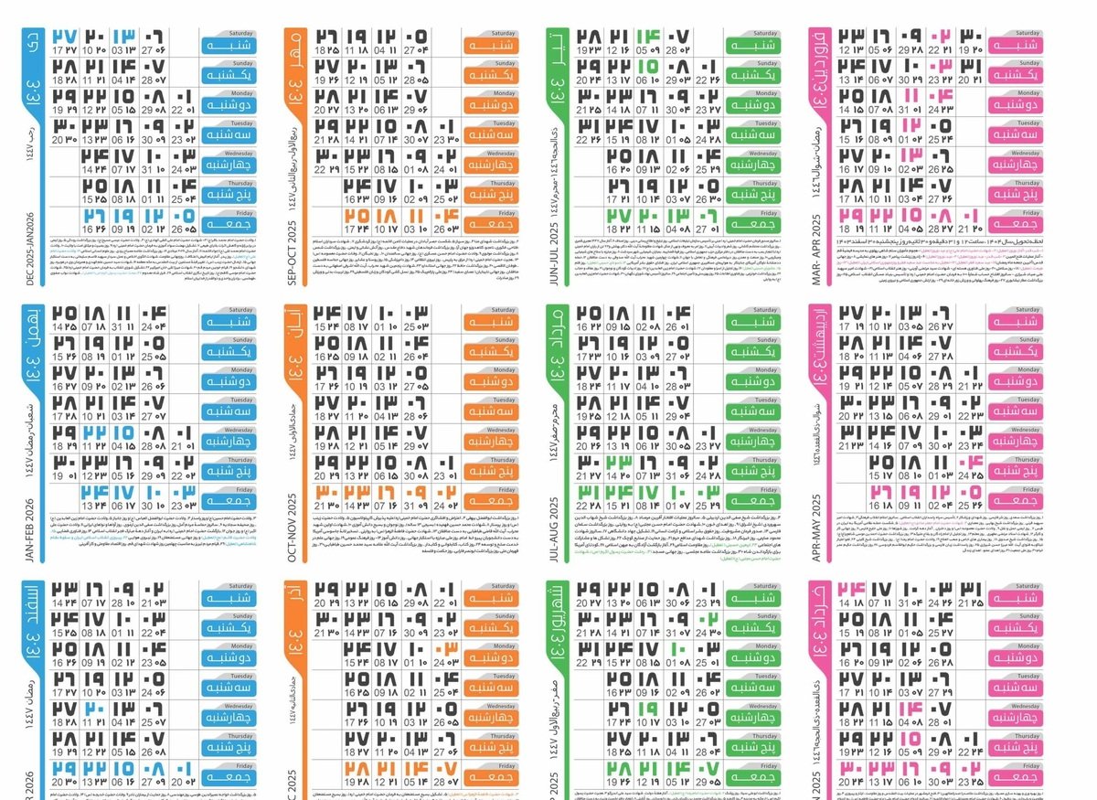 خانه/اجتماعیتقویم رسمی کشور سال ۱۴۰۴ هجری شمسی خواندن1 دقیقه -سه شنبه 1403/12/28 - 15:57کد خبر15171اشتراکگذاری منتشر شده از سوی مؤسسه ژئوفیزیک دانشگاه تهران لحظه تحویل سال ۱۴۰۴ هجری شمسی: ساعت ۱۲ و ۳۱ دقیقه و ۳۰ ثانیه ظهر روز پنجشنبه ۳۰ اسفندDocument تقویم رسمی کشور سال ۱۴۰۴ هجری شمسی.pdf کمتر از یک دقیقه زمان بگذارید، ثبتنام کنید و نظرتان را زیر همین پست به اشتراک بگذارید.پیامهای توهینآمیز و یا حاوی دعوت به خشونت حذف خواهند شد.ثبت نامدر ادامه بخوانید اخباری از سرقت منازل و مغازه ها و در مواردی سرقت گوشی موبایل شهروندان به عبدی مدیا واصل شده و در مواردی تسویه حساب های شخصیخواندن 1 دقیقه واقعیت، تلختر و دهشتناکتر از این پست هاست که اشاره کردهایدخواندن 1 دقیقه با جعل هویت در شبکه ایکس برای ایرانیان چه باید کرد؟خواندن 1 دقیقه سال نوی میلادی را در حالی آغاز میکنیم که ایرانِ جانمان، سالی سنگین و پرحادثه را پشت سر گذاشته استخواندن 1 دقیقه عدم پذیرش بیماران بیمه سلامت با تعرفه دولتی (به جز موارد اورژانسی، بیماران خاص، صعب العلاج و سوختگی)خواندن 1 دقیقهباید خواندخاطرات اکبر هاشمی - ۱ اسفند ۱۳۷۸ - ملاقات عبدالله جاسبی و نگرانی از نتایج انتخاباتفیلم/ سردار مرتضی طلایی کجاست؟خاطرات اکبر هاشمی - ۱۹ شهريور ۱۳۷۸ - مذاکرات دو نفره سیاسی با واعظ طبسی تا هنگام بدرقه به سوی تهران هم ادامه داشته که در نهایت هاشمی ظاهرا از اینجا تصمیم به شرکت جدی در انتخابات مجلس ششم گرفتسوابق ادوار اخیر مجلس شورای اسلامی نشان داد که مجلس در راس امور نیست و در اختیارات فرمانده کل قوا و نیروهای مسلح در هیچ سطحی نمیتواند دخالت و یا مصوبه طی کند، چه برسد که نظارت کندآینده ایران با نامزدهای اعلام شده انتخابات ریاست جمهوری چه میشود؟ / گفتگو با دکتر تقی آزاد ارمکیمیشه با شما احساس خستگی کرد؟یک دامپزشک بسیجی بجای جراح گوش و حلق و بینی سرپرست شبکه بهداشت ایذه شد!خاطرات اکبر هاشمی - ۱۴ شهريور ۱۳۷۸ - دیدار مدیران ارشد دستگاه قضایی با هاشمی رفسنجانی و گله آنان از بی توجهی هاشمی شاهرودی رییس جدید قوه قضاییه ادامه داردخاطرات اکبر هاشمی - ۱۶ شهريور ۱۳۷۸ - در ادامه تلاش های مرحوم واعظ طبسی که در دیدارهای مکرر برای تشویق هاشمی به شرکت در انتخابات اقدام میکرد این بار هم او با هاشمی ملاقات کردخاطرات اکبر هاشمی - ۱۸ شهريور ۱۳۷۸ - ادامه بازدید ها از متعلقات و ابنیه و آثار آستان قدس