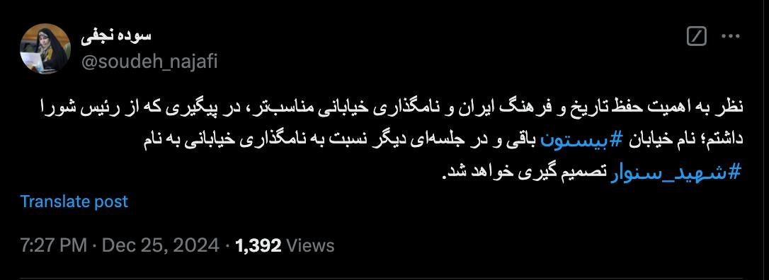 خانه/اجتماعیسوده نجفی از اعضای شورای شهر تهران خبر از باقی ماندن نام بیستون در تهران خبر میدهدخواندن0 -چهارشنبه 1403/10/05 - 23:31کد خبر10729اشتراکگذاری کمتر از یک دقیقه زمان بگذارید، ثبتنام کنید و نظرتان را زیر همین پست به اشتراک بگذارید.پیامهای توهینآمیز و یا حاوی دعوت به خشونت حذف خواهند شد.ثبت نامدر ادامه بخوانید اخباری از سرقت منازل و مغازه ها و در مواردی سرقت گوشی موبایل شهروندان به عبدی مدیا واصل شده و در مواردی تسویه حساب های شخصیخواندن 1 دقیقه واقعیت، تلختر و دهشتناکتر از این پست هاست که اشاره کردهایدخواندن 1 دقیقه با جعل هویت در شبکه ایکس برای ایرانیان چه باید کرد؟خواندن 1 دقیقه سال نوی میلادی را در حالی آغاز میکنیم که ایرانِ جانمان، سالی سنگین و پرحادثه را پشت سر گذاشته استخواندن 1 دقیقه عدم پذیرش بیماران بیمه سلامت با تعرفه دولتی (به جز موارد اورژانسی، بیماران خاص، صعب العلاج و سوختگی)خواندن 1 دقیقهباید خواندخاطرات اکبر هاشمی - ۱ اسفند ۱۳۷۸ - ملاقات عبدالله جاسبی و نگرانی از نتایج انتخاباتفیلم/ سردار مرتضی طلایی کجاست؟خاطرات اکبر هاشمی - ۱۹ شهريور ۱۳۷۸ - مذاکرات دو نفره سیاسی با واعظ طبسی تا هنگام بدرقه به سوی تهران هم ادامه داشته که در نهایت هاشمی ظاهرا از اینجا تصمیم به شرکت جدی در انتخابات مجلس ششم گرفتسوابق ادوار اخیر مجلس شورای اسلامی نشان داد که مجلس در راس امور نیست و در اختیارات فرمانده کل قوا و نیروهای مسلح در هیچ سطحی نمیتواند دخالت و یا مصوبه طی کند، چه برسد که نظارت کندآینده ایران با نامزدهای اعلام شده انتخابات ریاست جمهوری چه میشود؟ / گفتگو با دکتر تقی آزاد ارمکیمیشه با شما احساس خستگی کرد؟یک دامپزشک بسیجی بجای جراح گوش و حلق و بینی سرپرست شبکه بهداشت ایذه شد!خاطرات اکبر هاشمی - ۱۴ شهريور ۱۳۷۸ - دیدار مدیران ارشد دستگاه قضایی با هاشمی رفسنجانی و گله آنان از بی توجهی هاشمی شاهرودی رییس جدید قوه قضاییه ادامه داردخاطرات اکبر هاشمی - ۱۶ شهريور ۱۳۷۸ - در ادامه تلاش های مرحوم واعظ طبسی که در دیدارهای مکرر برای تشویق هاشمی به شرکت در انتخابات اقدام میکرد این بار هم او با هاشمی ملاقات کردخاطرات اکبر هاشمی - ۱۸ شهريور ۱۳۷۸ - ادامه بازدید ها از متعلقات و ابنیه و آثار آستان قدس