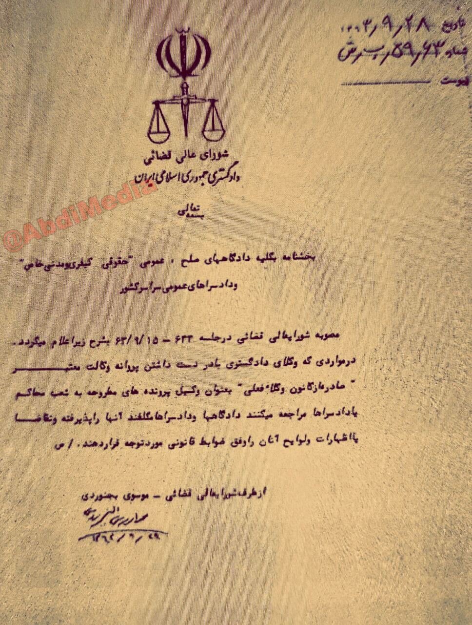 خانه/یادداشت ویژهمتن بخشنامه ۲۸ آذر ماه ۱۳۶۳ شورای عالی قضایی به کلیه دادگاه ها و دادسراهای ایران مبنی بر پذیرش وکلاءخواندن1 دقیقه -شنبه 1403/06/24 - 17:20کد خبر1830اشتراکگذاری از عجایب تاریخ وکالت در ایران پس از پیروزی انقلاب آن است که تا سال ۱۳۶۳ مشکلات عدیدهای برای وکالت کردن در دادگستری و بخصوص دادگاههای انقلاب ایجاد و بسیاری از متهمان هم وکیل نداشتند.حتی در احکام سلب حیات (اعدام) هم وضع به همین روال بود.در ۱۵ آذر ۱۳۶۳ شورای عالی قضایی تصویب میکند تا وکلا بتوانند در پروندههای مطروحه به شعب محاکم و دادسراها مراجعه کنند و آنان نیز مکلف شدند تا اظهارات وکلا و لوایح آنها را وفق ضوابط قانونی مورد توجه قرار دهند.در آن زمان آیت الله موسوی بجنوردی آنرا در ۲۸ آذر ۱۳۶۳ به کلیه دادگاههای صلح سابق، عمومی (شامل: حقوقی، کیفری و مدنی خاص) و دادسراهای عمومی سراسر کشور ابلاغ کرد.اما دقت کنید نامی از دادسرا و دادگاه های انقلاب اسلامی و دادسرا و دادگاه های نظامی در این مصوبه نیست.این داستان ادامه داشت تا سالها بعد مصوب مجمع تشخیص مصلحت صادر شد و حضور وکلا را تاکید و تصویب کرد ولی در مورد دادگاههای ویژه روحانیت مقرر کرد اصحاب دعوی از میان روحانیون صالحی که آن دادگاه معرفی میکند وکیل انتخاب کنند.عبدالله عبدی کمتر از یک دقیقه زمان بگذارید، ثبتنام کنید و نظرتان را زیر همین پست به اشتراک بگذارید.پیامهای توهینآمیز و یا حاوی دعوت به خشونت حذف خواهند شد.ثبت نامدر ادامه بخوانید و بالاخره بصورت رسمی خبر کشته شدن رهبر جمهوری اسلامی تایید شد...خواندن 0 بازنشر - متن بخشنامه ۲۸ آذر ماه ۱۳۶۳ شورای عالی قضایی به کلیه دادگاه ها و دادسراهای ایران مبنی بر پذیرش وکلاءخواندن 1 دقیقه این «آرامشِ پرهزینه»، بهترین شرایط برای کاملکردن حلقه امنیت داخلی بود.خواندن 1 دقیقه اینترنت چه زمانی و تحت چه شرایطی وصل میشود؟ پاسخ در خیابان، دریا و آسمان استخواندن 4 دقیقه سیاست بازپسگیری خیابان؛ از کنترل تا آغاز برخورد سختخواندن 3 دقیقهباید خواندخاطرات اکبر هاشمی - ۱ اسفند ۱۳۷۸ - ملاقات عبدالله جاسبی و نگرانی از نتایج انتخاباتفیلم/ سردار مرتضی طلایی کجاست؟خاطرات اکبر هاشمی - ۱۹ شهريور ۱۳۷۸ - مذاکرات دو نفره سیاسی با واعظ طبسی تا هنگام بدرقه به سوی تهران هم ادامه داشته که در نهایت هاشمی ظاهرا از اینجا تصمیم به شرکت جدی در انتخابات مجلس ششم گرفتسوابق ادوار اخیر مجلس شورای اسلامی نشان داد که مجلس در راس امور نیست و در اختیارات فرمانده کل قوا و نیروهای مسلح در هیچ سطحی نمیتواند دخالت و یا مصوبه طی کند، چه برسد که نظارت کندآینده ایران با نامزدهای اعلام شده انتخابات ریاست جمهوری چه میشود؟ / گفتگو با دکتر تقی آزاد ارمکیمیشه با شما احساس خستگی کرد؟یک دامپزشک بسیجی بجای جراح گوش و حلق و بینی سرپرست شبکه بهداشت ایذه شد!خاطرات اکبر هاشمی - ۱۴ شهريور ۱۳۷۸ - دیدار مدیران ارشد دستگاه قضایی با هاشمی رفسنجانی و گله آنان از بی توجهی هاشمی شاهرودی رییس جدید قوه قضاییه ادامه داردخاطرات اکبر هاشمی - ۱۶ شهريور ۱۳۷۸ - در ادامه تلاش های مرحوم واعظ طبسی که در دیدارهای مکرر برای تشویق هاشمی به شرکت در انتخابات اقدام میکرد این بار هم او با هاشمی ملاقات کردخاطرات اکبر هاشمی - ۱۸ شهريور ۱۳۷۸ - ادامه بازدید ها از متعلقات و ابنیه و آثار آستان قدس