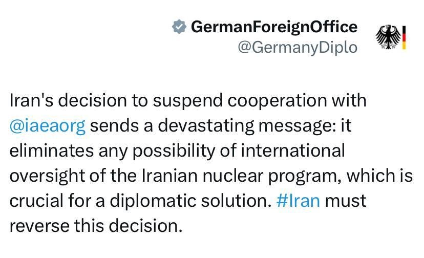 خانه/بینالملل وزارت خارجه آلمان: تصمیم ایران برای تعلیق همکاری با آژانس پیام ویرانگری ارسال میکند: این اقدام هرگونه امکان نظارت بینالمللی بر برنامه هستهای ایران را که برای یک راهحل دیپلماتیک بسیار مهم است، از بین میبرد. ایران باید این تصمیم را لغو کند.خواندن0 -پنجشنبه 1404/04/12 - 11:23کد خبر20746اشتراکگذاری کمتر از یک دقیقه زمان بگذارید، ثبتنام کنید و نظرتان را زیر همین پست به اشتراک بگذارید.پیامهای توهینآمیز و یا حاوی دعوت به خشونت حذف خواهند شد.ثبت نامدر ادامه بخوانید خبرنگاری با اشاره به حضور استیو ویتکاف و جرد کوشنر و همچنین برد کوپر، رئیس ستاد فرماندهی مرکزی آمریکا در مذاکرات با جمهوری اسلامی در عمان، از دونالد ترامپ پرسید...خواندن 1 دقیقه ترامپ: ما مذاکرات بسیار خوبی درباره ایران داشتیم و به نظر میرسد که ایران به شدت تمایل به دستیابی به توافق دارد.خواندن 1 دقیقه وزارت خارجۀ ایالات متحده بازداشت مصطفی تاجزاده در ایام مرخصی از زندان و انتقال او به اوین را نمایانگر «بیاعتنایی آشکار جمهوری اسلامی به اصول و شرافت انسانی و عدالت» خواند.خواندن 1 دقیقه اطلاعیه و هشدار آمریکا به فارسیخواندن 0 ترامپ درباره اینکه چگونه حماس را به پذیرش توافق واداشت: من کمی محکم صحبت کردم و همین کافی بود. این همان چیزی است که در چنین دنیای سختی جواب میدهد: باید محکم حرف بزنی.خواندن 1 دقیقهباید خواندخاطرات اکبر هاشمی - ۱ اسفند ۱۳۷۸ - ملاقات عبدالله جاسبی و نگرانی از نتایج انتخاباتفیلم/ سردار مرتضی طلایی کجاست؟خاطرات اکبر هاشمی - ۱۹ شهريور ۱۳۷۸ - مذاکرات دو نفره سیاسی با واعظ طبسی تا هنگام بدرقه به سوی تهران هم ادامه داشته که در نهایت هاشمی ظاهرا از اینجا تصمیم به شرکت جدی در انتخابات مجلس ششم گرفتسوابق ادوار اخیر مجلس شورای اسلامی نشان داد که مجلس در راس امور نیست و در اختیارات فرمانده کل قوا و نیروهای مسلح در هیچ سطحی نمیتواند دخالت و یا مصوبه طی کند، چه برسد که نظارت کندآینده ایران با نامزدهای اعلام شده انتخابات ریاست جمهوری چه میشود؟ / گفتگو با دکتر تقی آزاد ارمکیمیشه با شما احساس خستگی کرد؟یک دامپزشک بسیجی بجای جراح گوش و حلق و بینی سرپرست شبکه بهداشت ایذه شد!خاطرات اکبر هاشمی - ۱۴ شهريور ۱۳۷۸ - دیدار مدیران ارشد دستگاه قضایی با هاشمی رفسنجانی و گله آنان از بی توجهی هاشمی شاهرودی رییس جدید قوه قضاییه ادامه داردخاطرات اکبر هاشمی - ۱۶ شهريور ۱۳۷۸ - در ادامه تلاش های مرحوم واعظ طبسی که در دیدارهای مکرر برای تشویق هاشمی به شرکت در انتخابات اقدام میکرد این بار هم او با هاشمی ملاقات کردخاطرات اکبر هاشمی - ۱۸ شهريور ۱۳۷۸ - ادامه بازدید ها از متعلقات و ابنیه و آثار آستان قدس